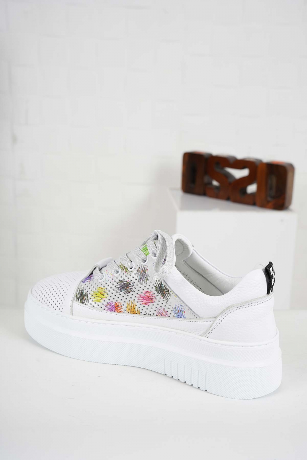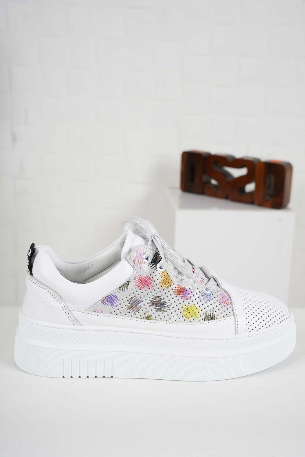 Hakiki Deri Beyaz Flt.-Renkli Baskılı Kadın Casual Ayakkabı 241186110