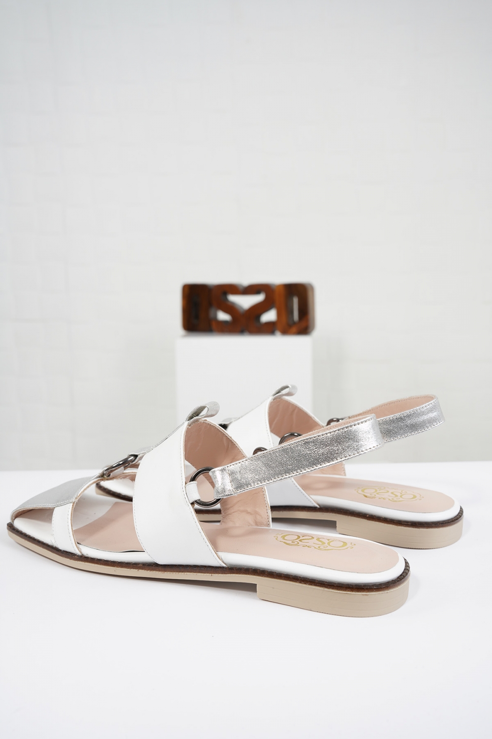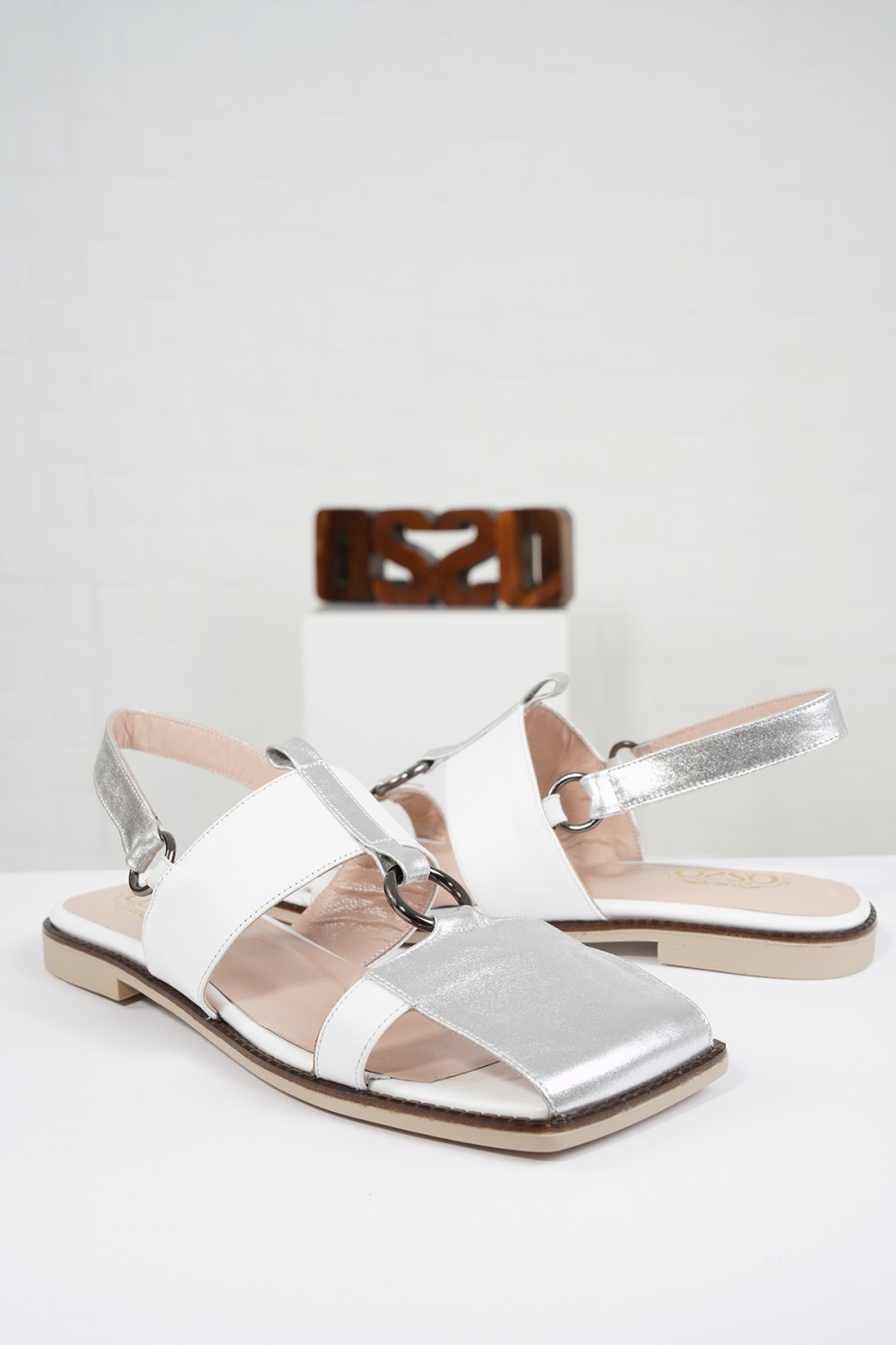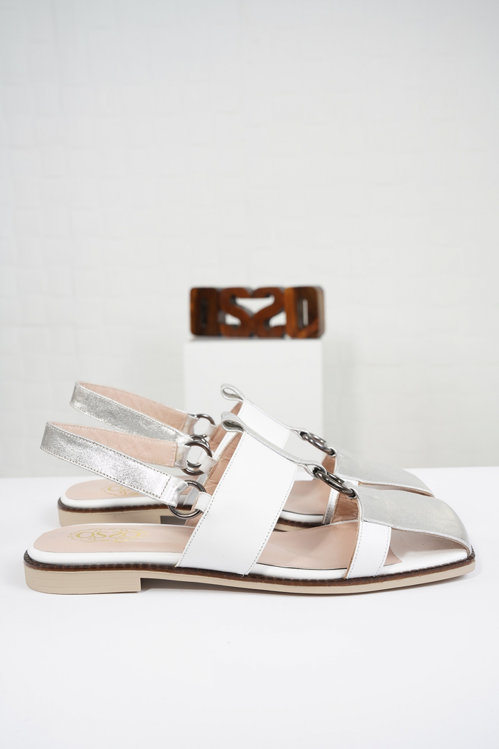 Hakiki Deri Beyaz-Gümüş Kadın Burun Kapalı Sandalet 221127515