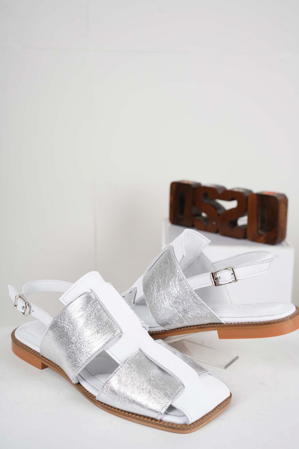 Hakiki Deri Beyaz-Gümüş Kadın Burun Kapalı Sandalet 241127509