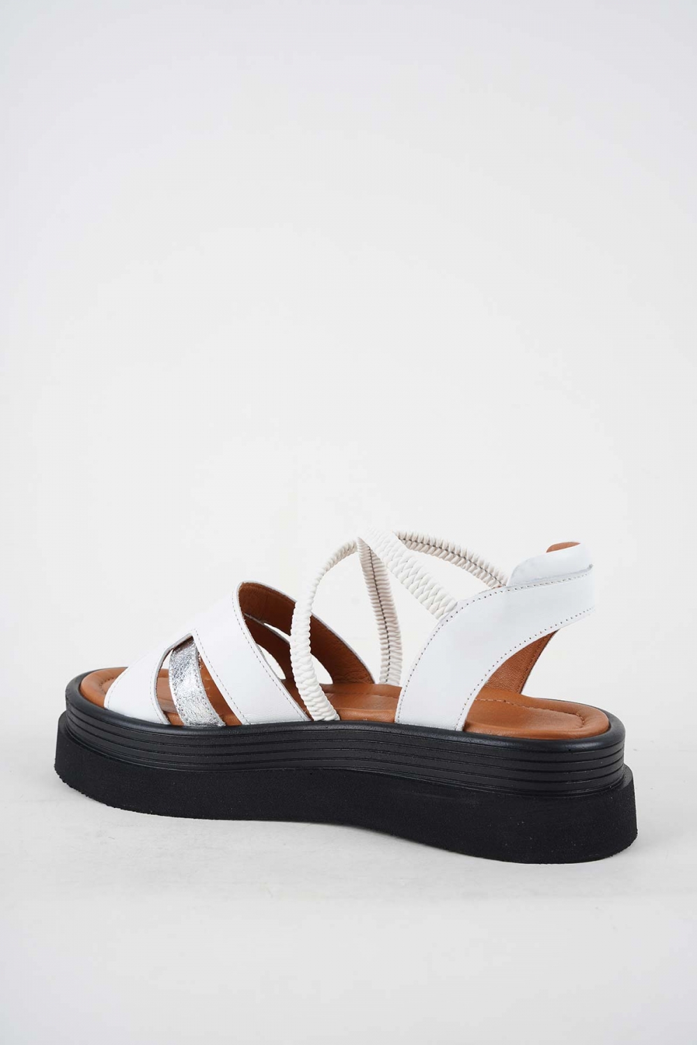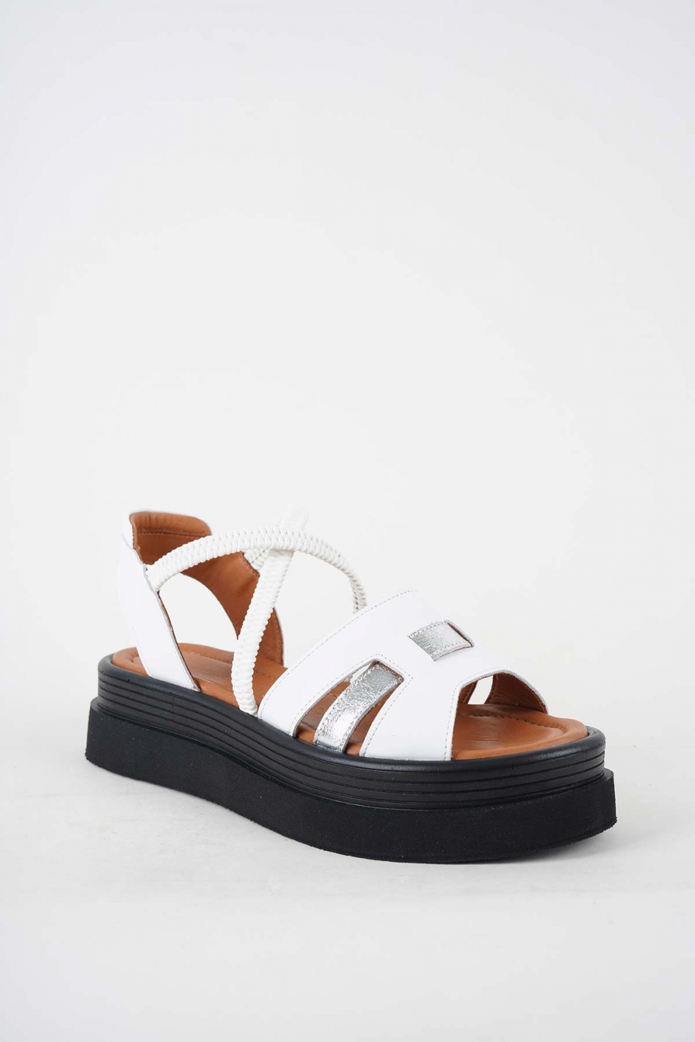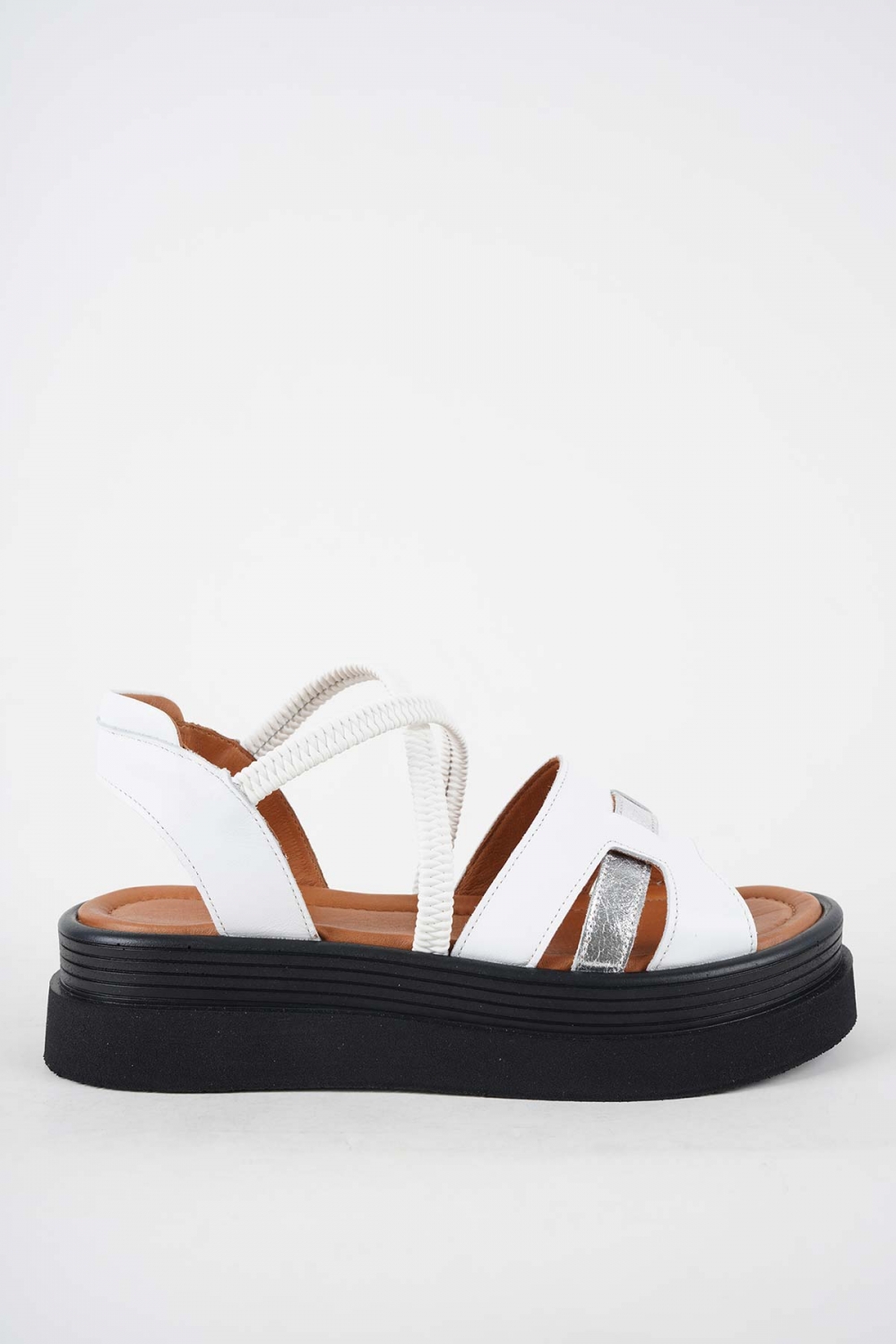 Hakiki Deri Beyaz-Gümüş Kadın Dolgu Topuklu Sandalet 251186509