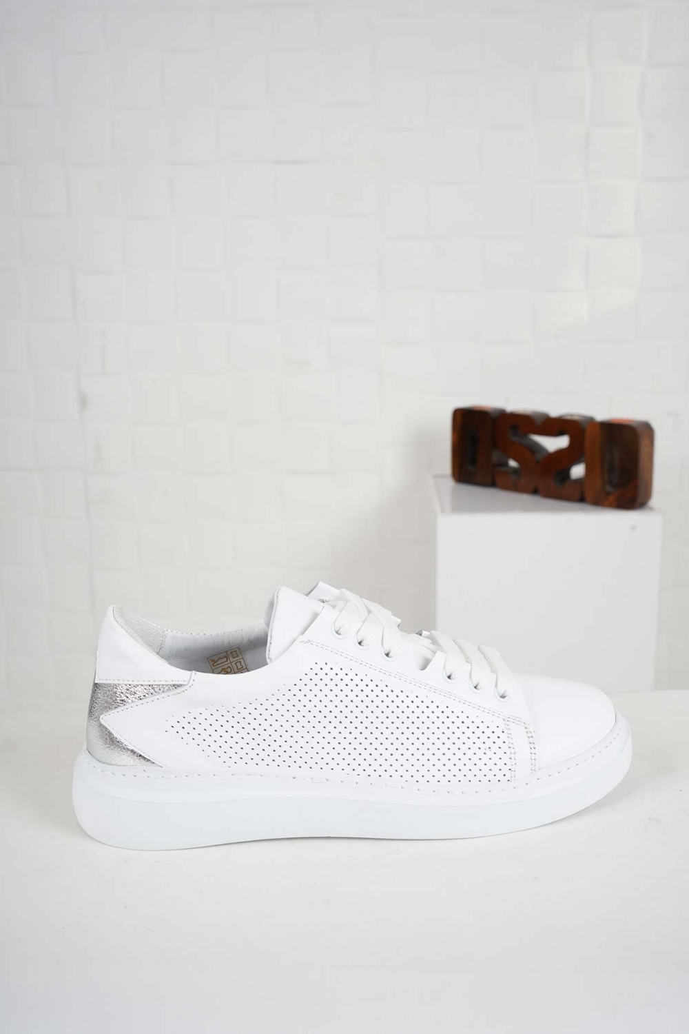 Hakiki Deri Beyaz-Gümüş Kadın Sneaker Ayakkabı 241218101