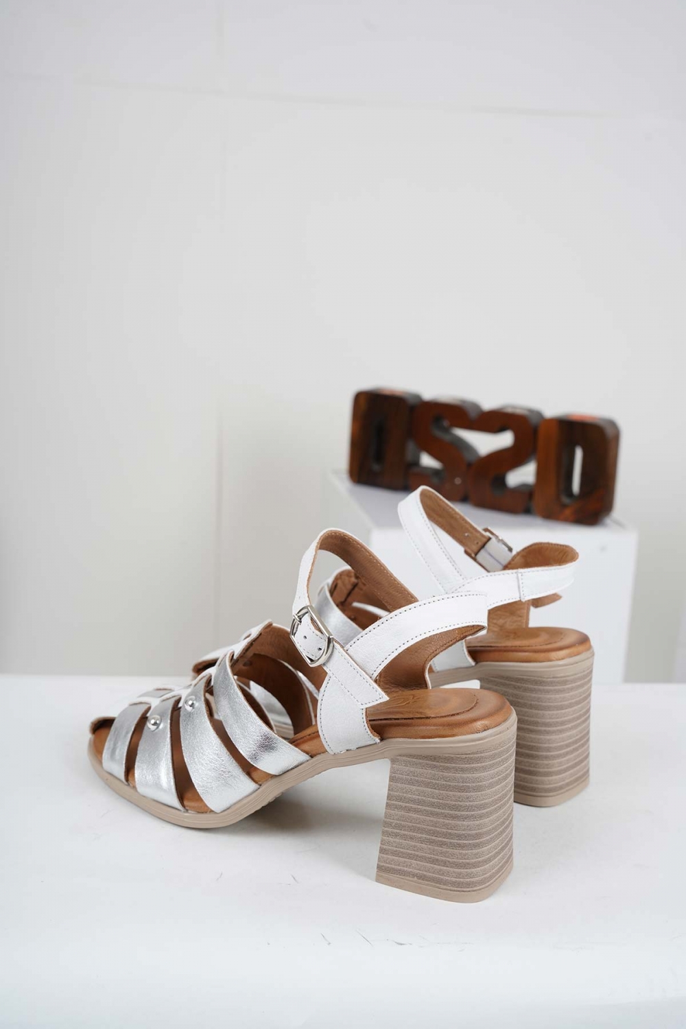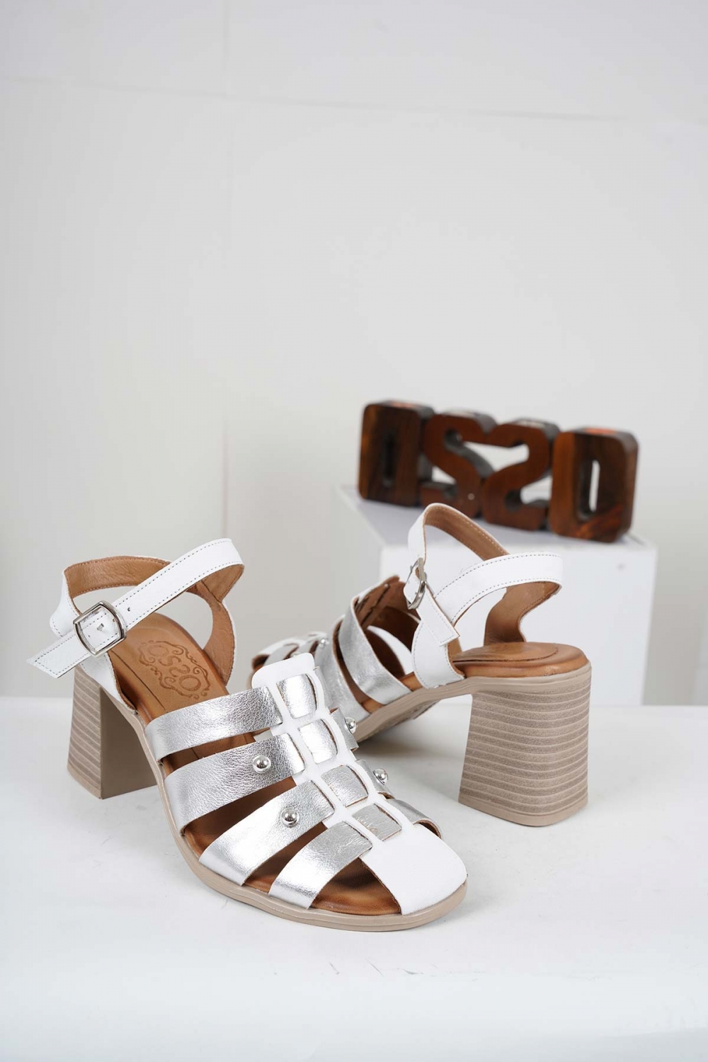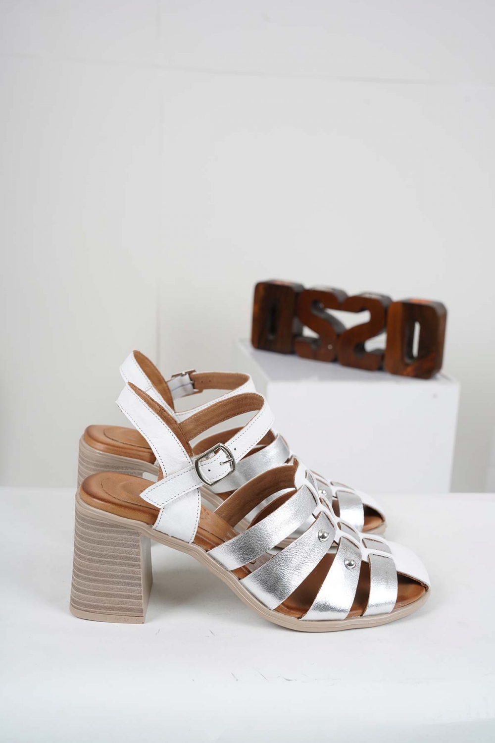 Hakiki Deri Beyaz-Gümüş Kadın Yüksek Topuklu Sandalet 241126521