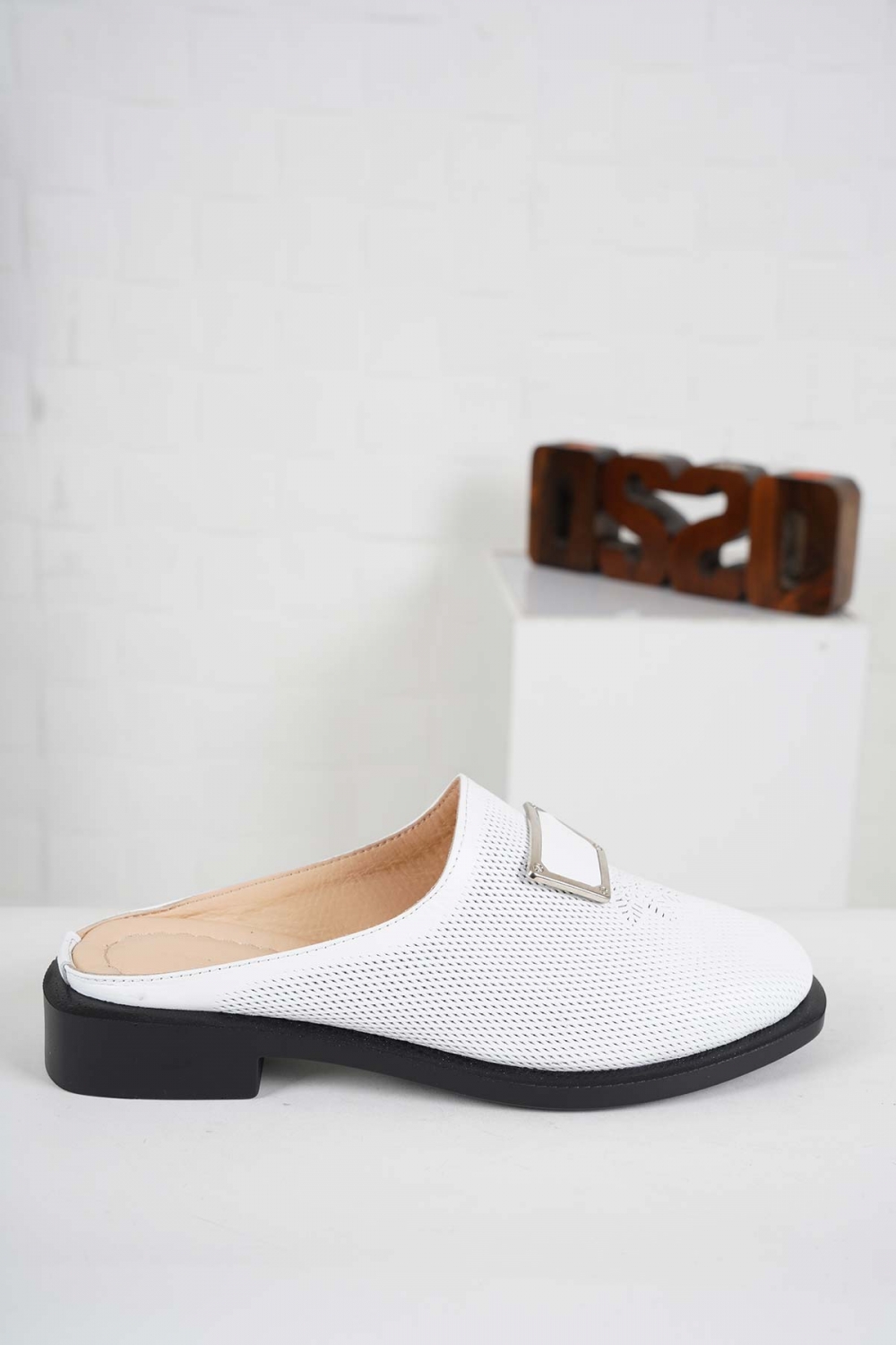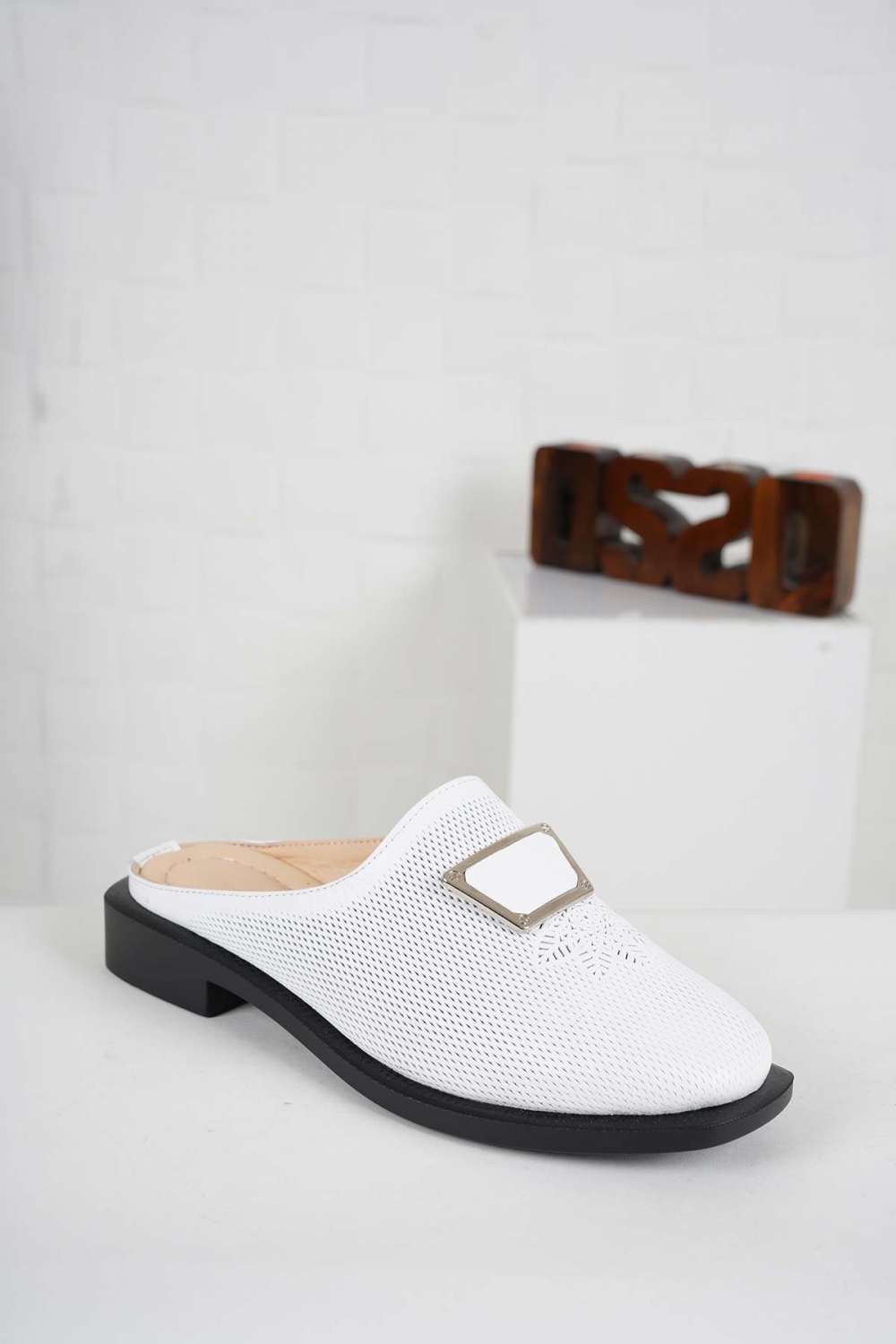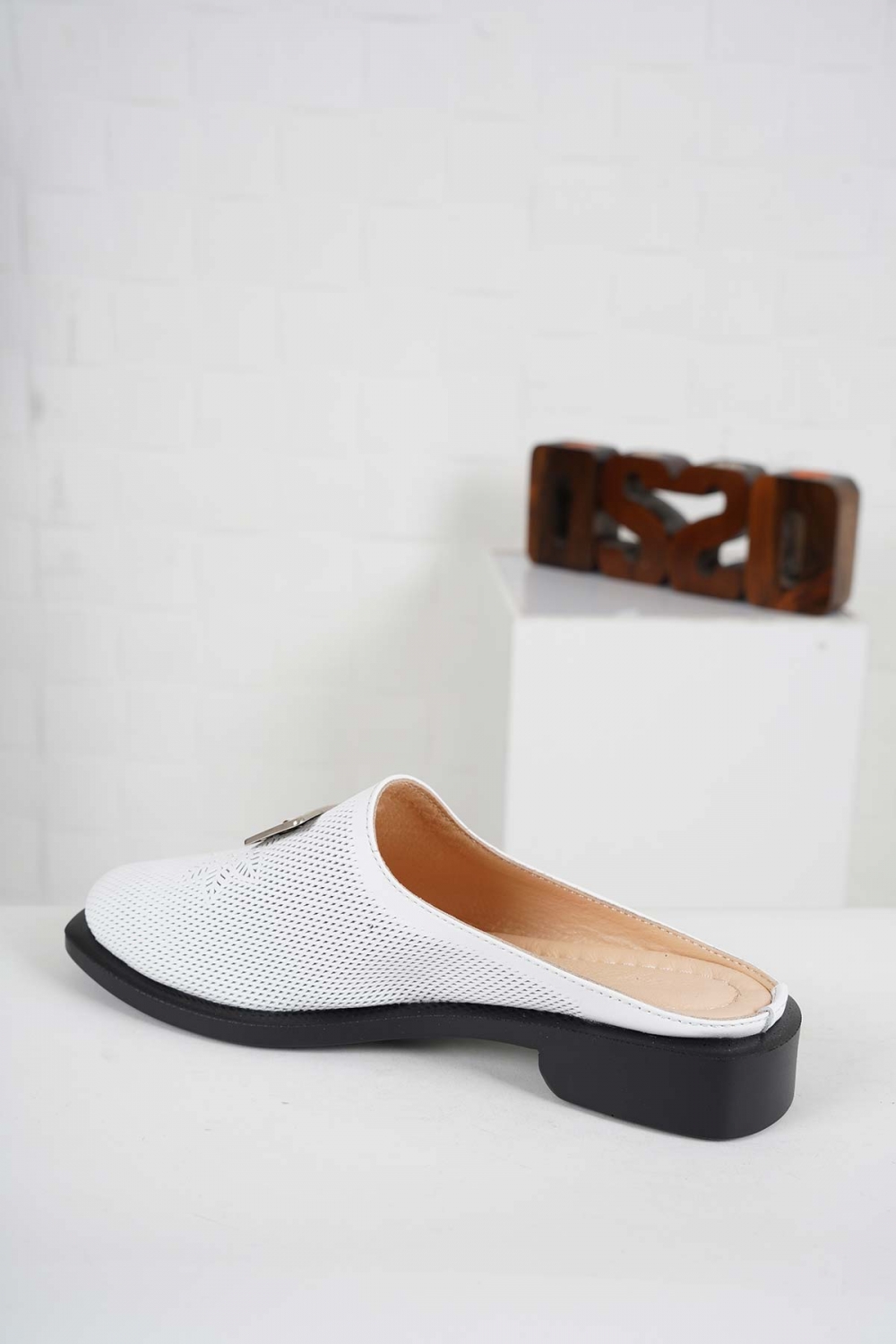 Hakiki Deri Beyaz Kadın Alçak Topuklu Sabo 241189704