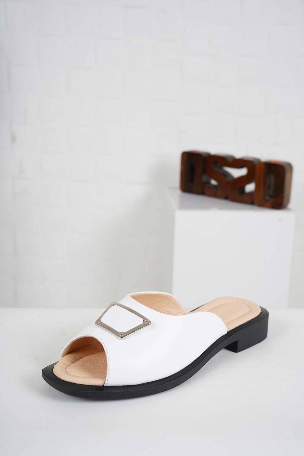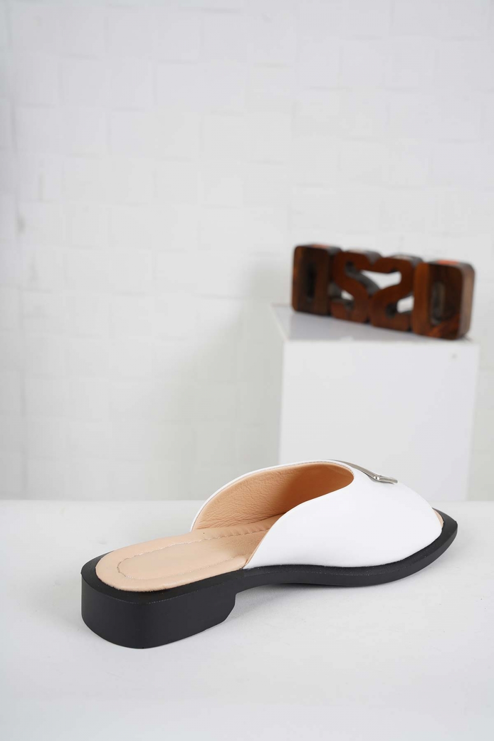 Hakiki Deri Beyaz Kadın Alçak Topuklu Terlik 241189601
