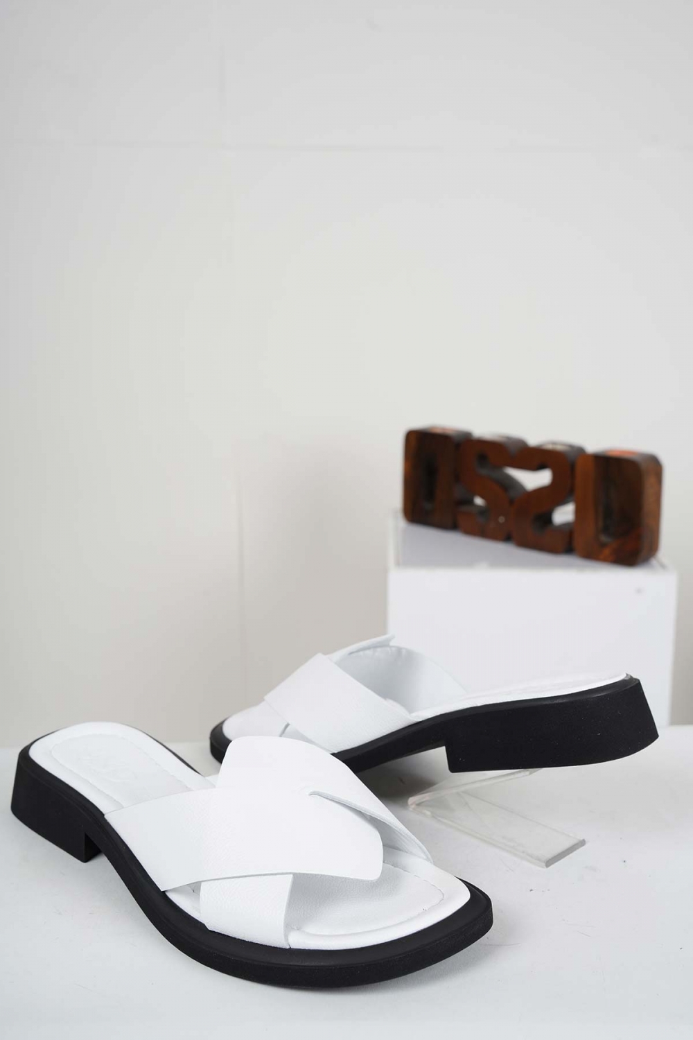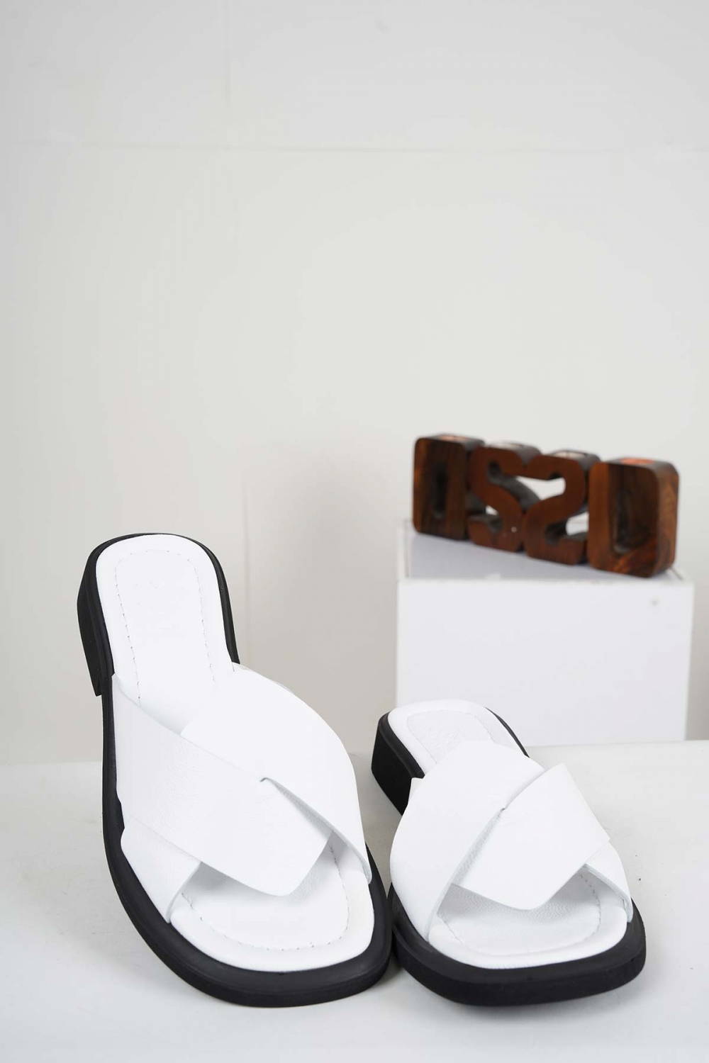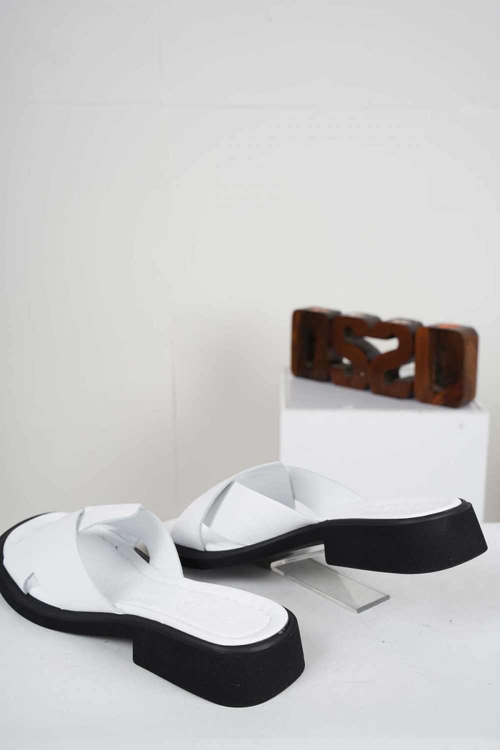 Hakiki Deri Beyaz Kadın Alçak Topuklu Terlik 241225602