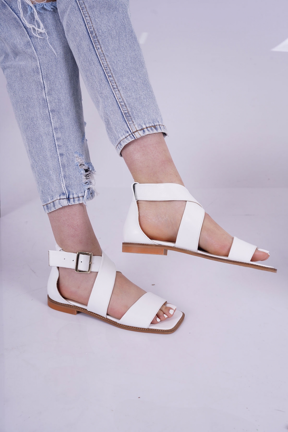 Hakiki Deri Beyaz Kadın Burun Kapalı Sandalet 221127522