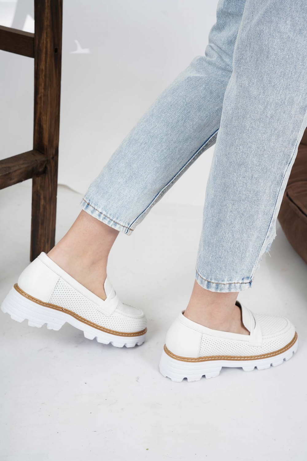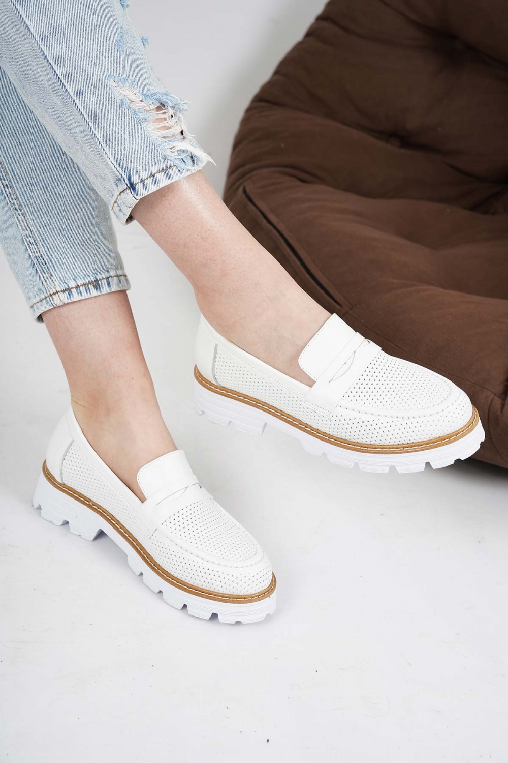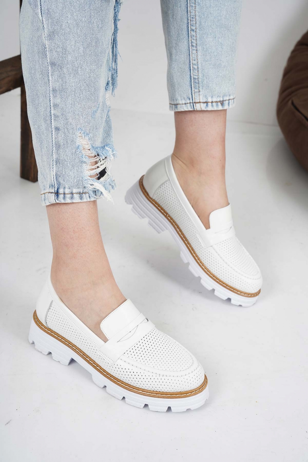 Hakiki Deri Beyaz Kadın Casual Ayakkabı 221134104