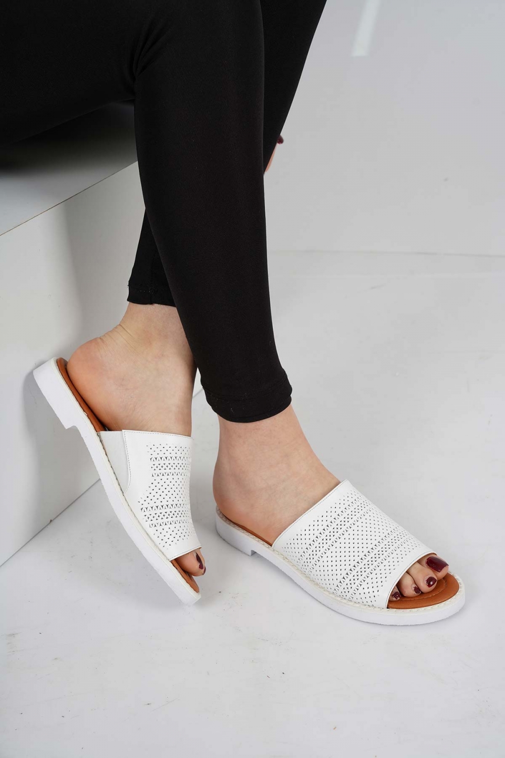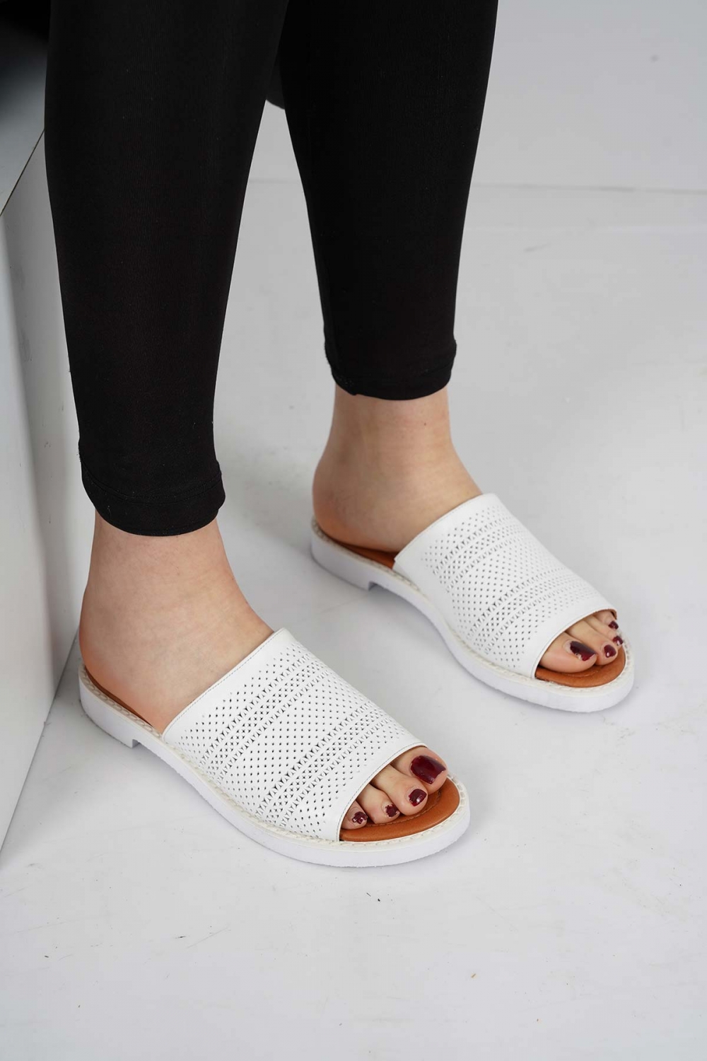 Hakiki Deri Beyaz Kadın Casual Terlik 231127607