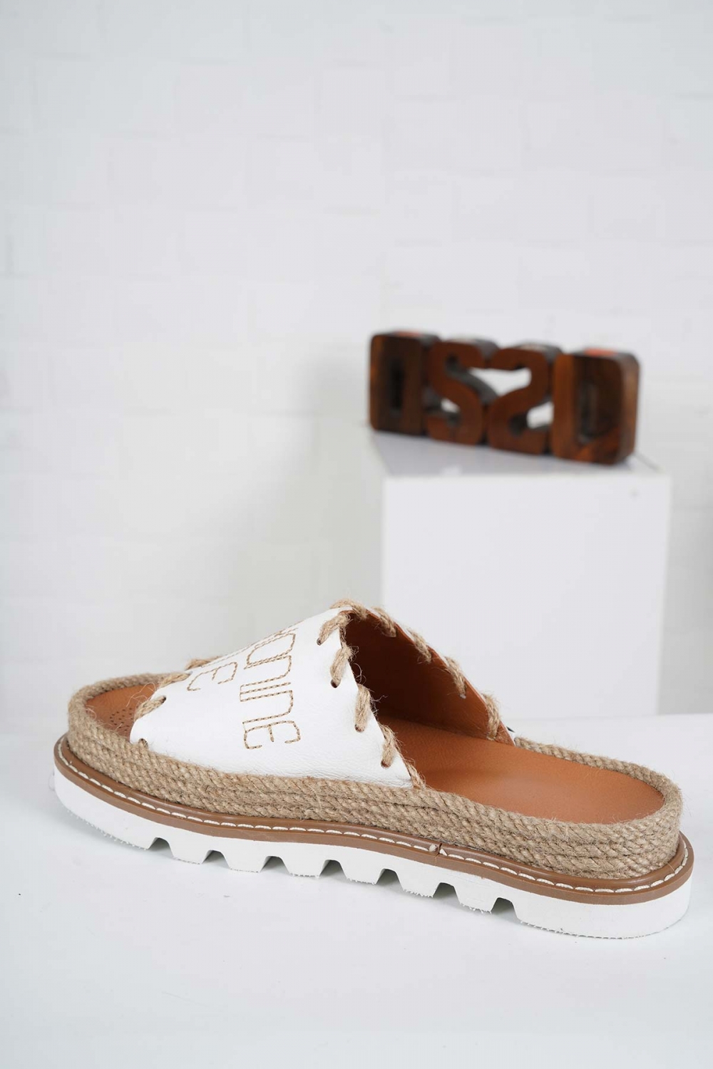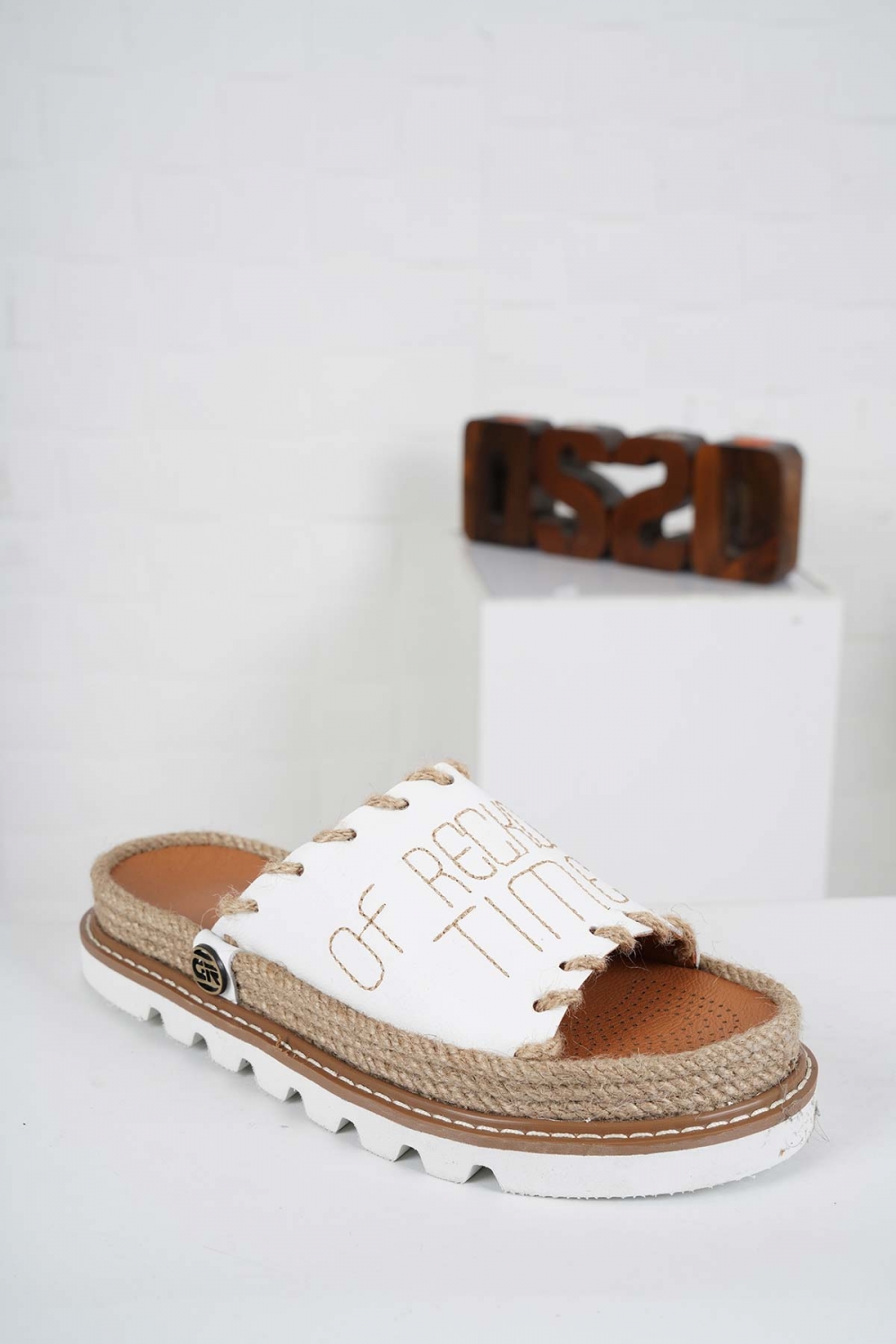 Hakiki Deri Beyaz Kadın Casual Terlik 241111603