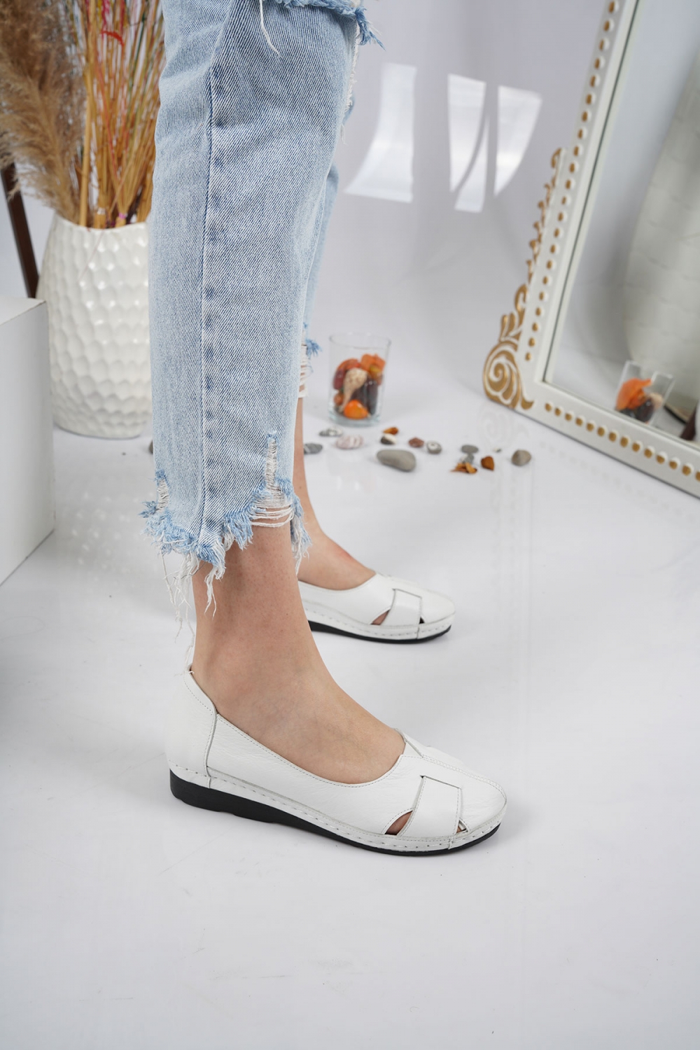 Hakiki Deri Beyaz Kadın Comfort Ayakkabı 221177101