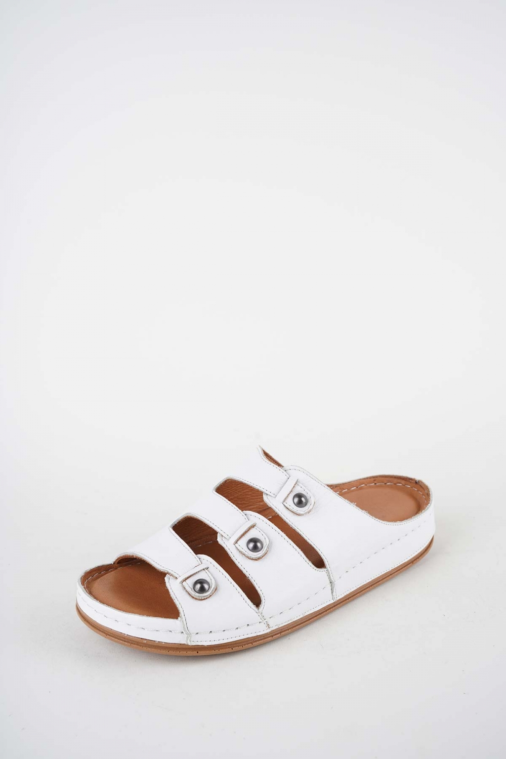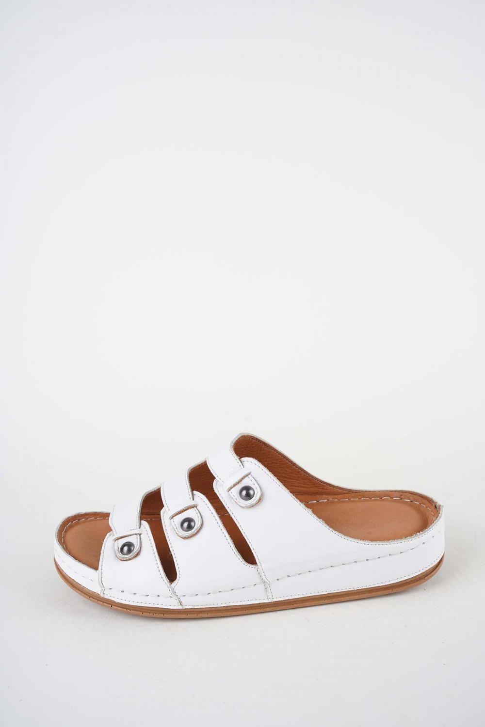 Hakiki Deri Beyaz Kadın Comfort Terlik 261220601