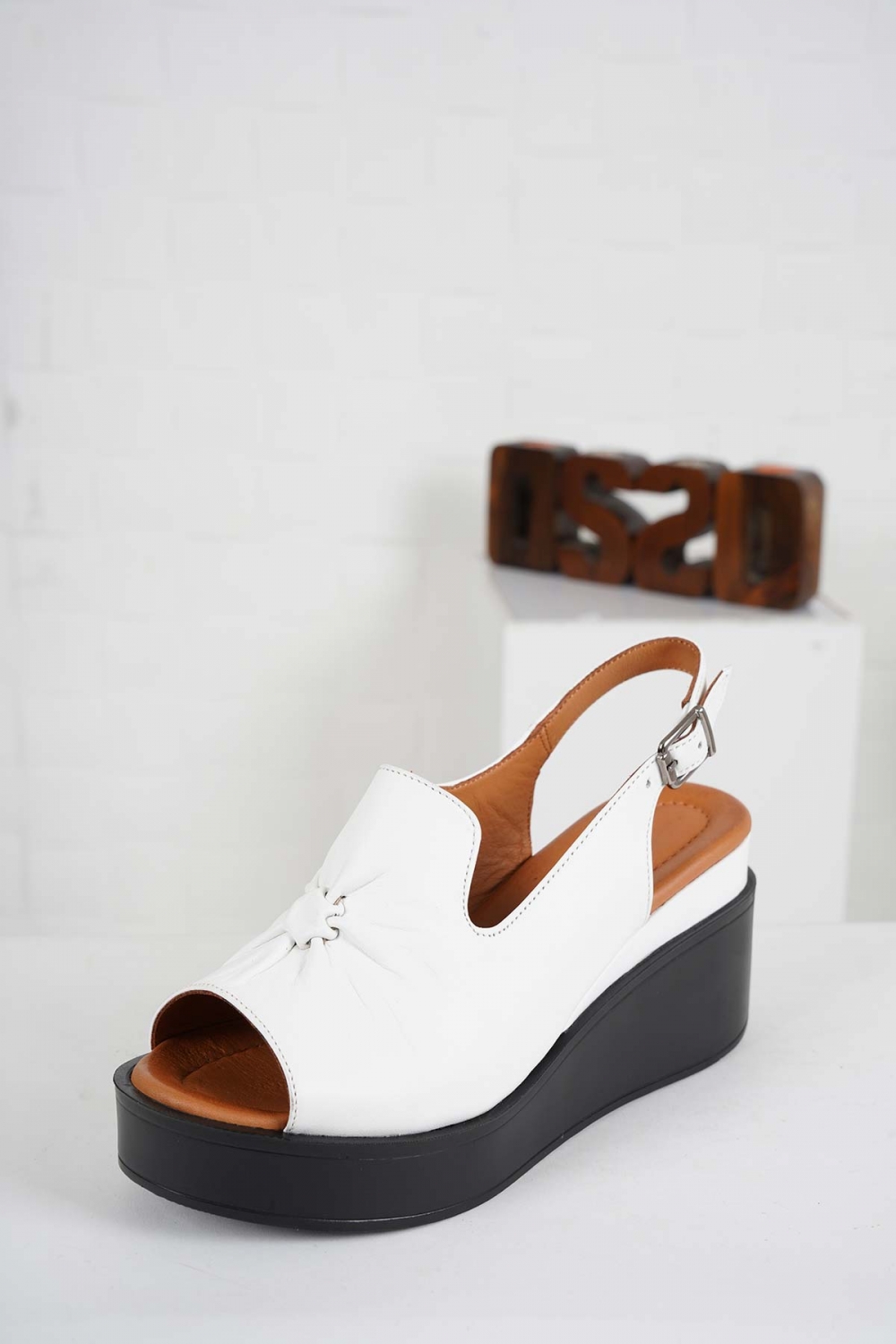 Hakiki Deri Beyaz Kadın Dolgu Topuk Sandalet 241229502