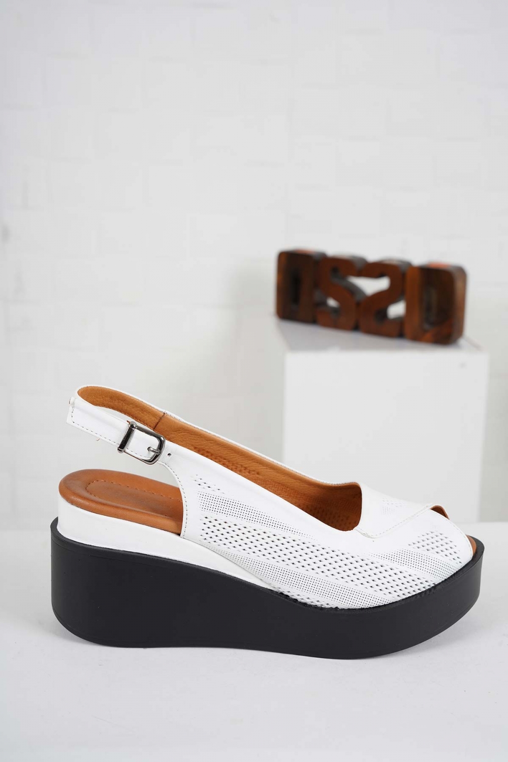 Hakiki Deri Beyaz Kadın Dolgu Topuk Sandalet 241229510