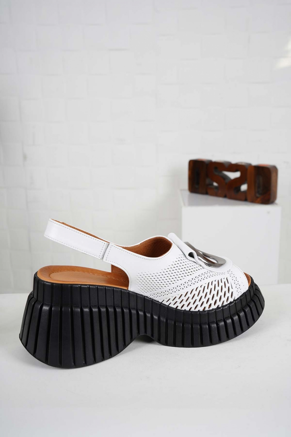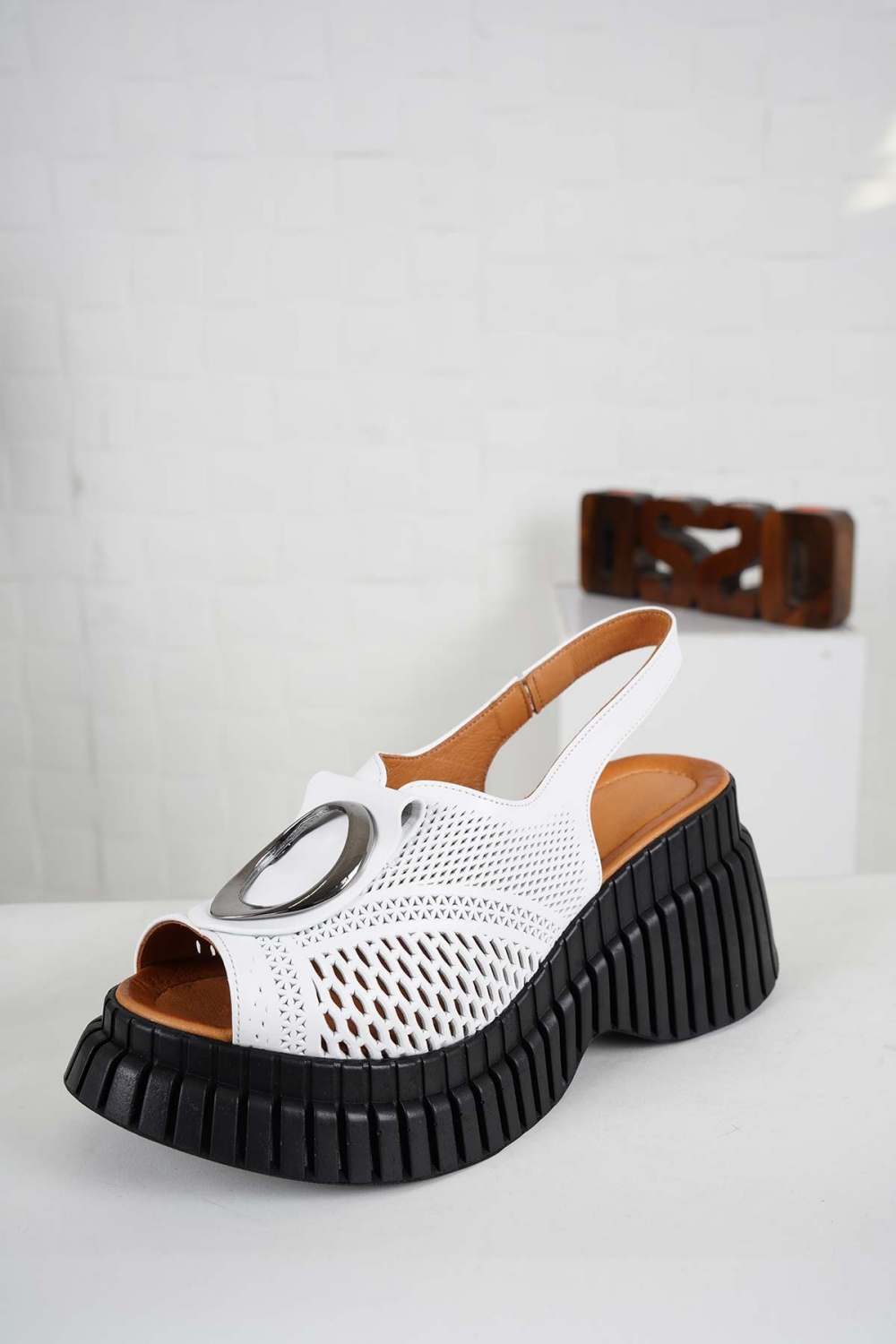 Hakiki Deri Beyaz Kadın Dolgu Topuk Sandalet 241229512