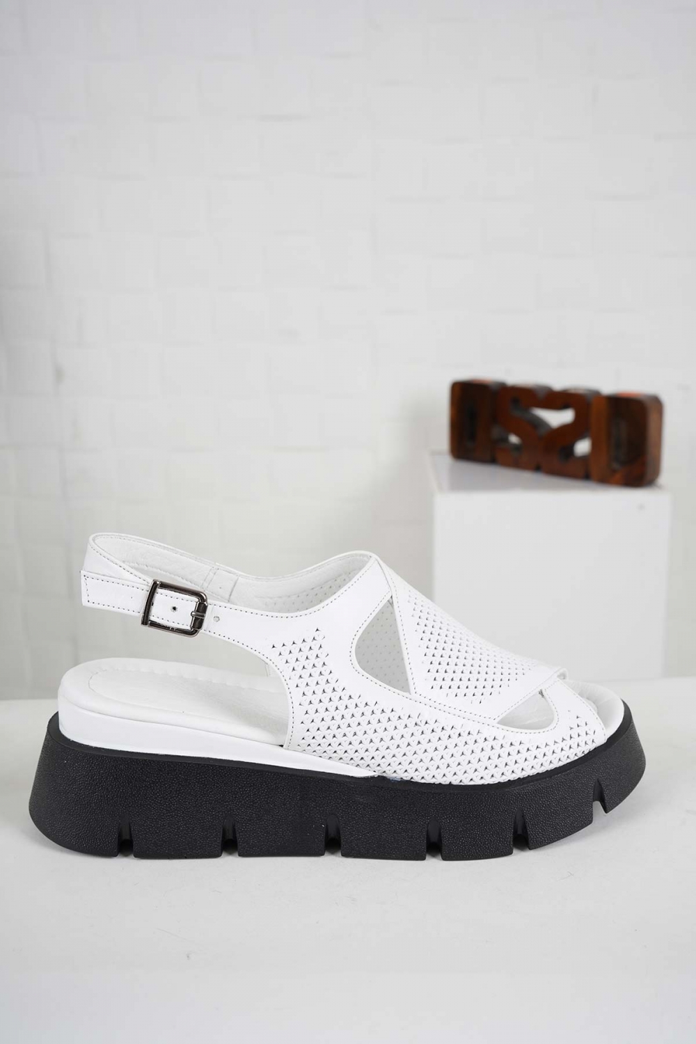 Hakiki Deri Beyaz Kadın Dolgu Topuk Sandalet 241229513