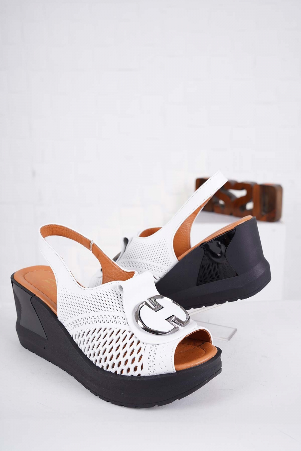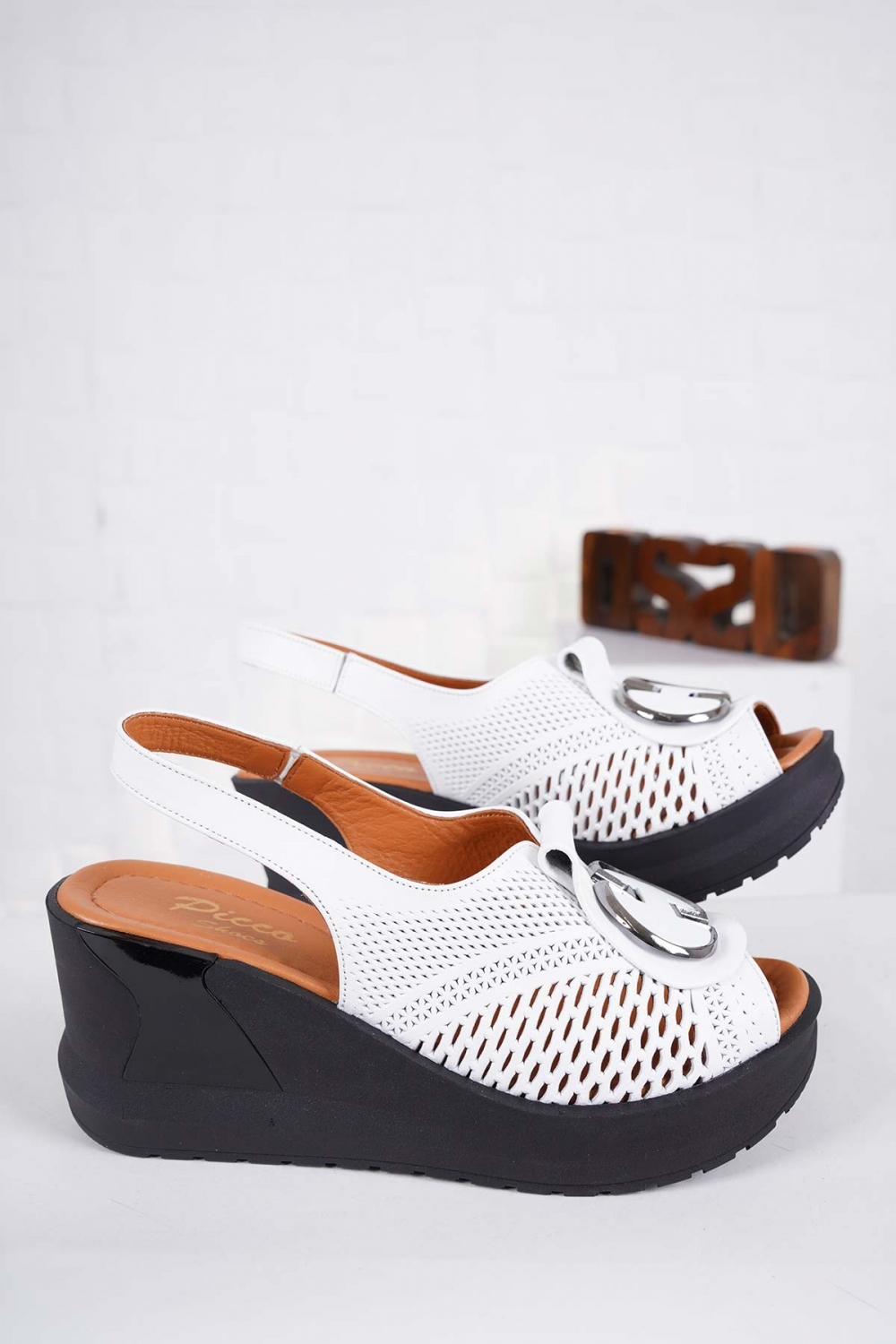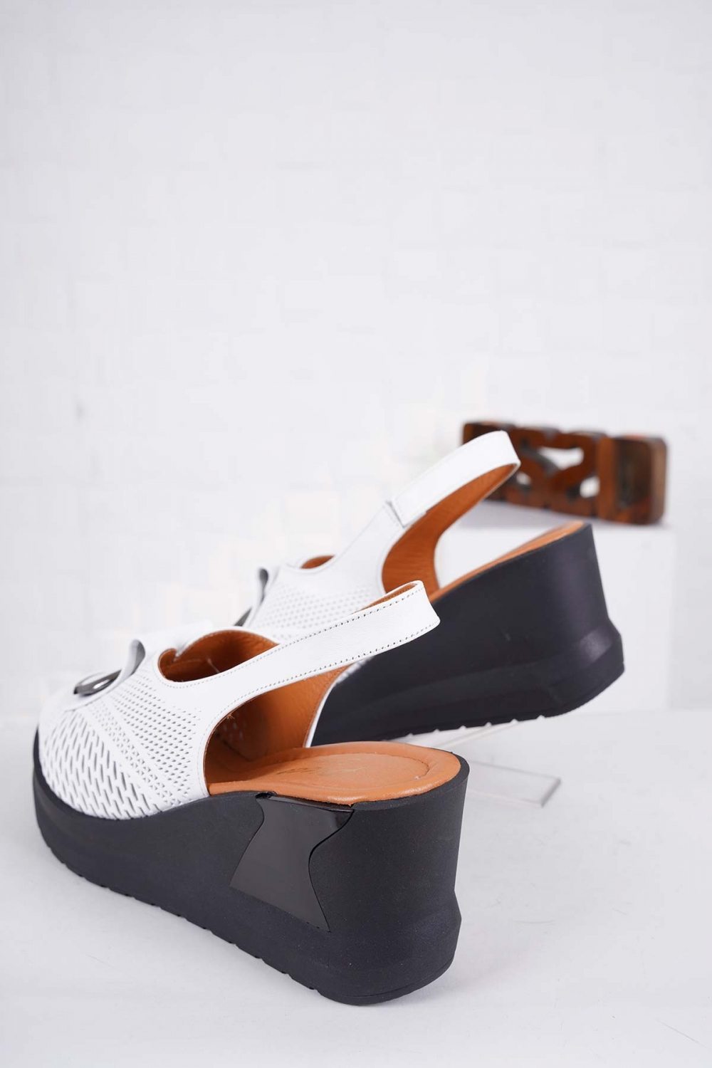 Hakiki Deri Beyaz Kadın Dolgu Topuk Sandalet 241229515
