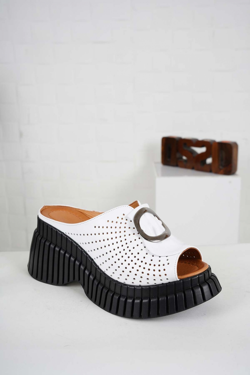 Hakiki Deri Beyaz Kadın Dolgu Topuk Terlik 241229609