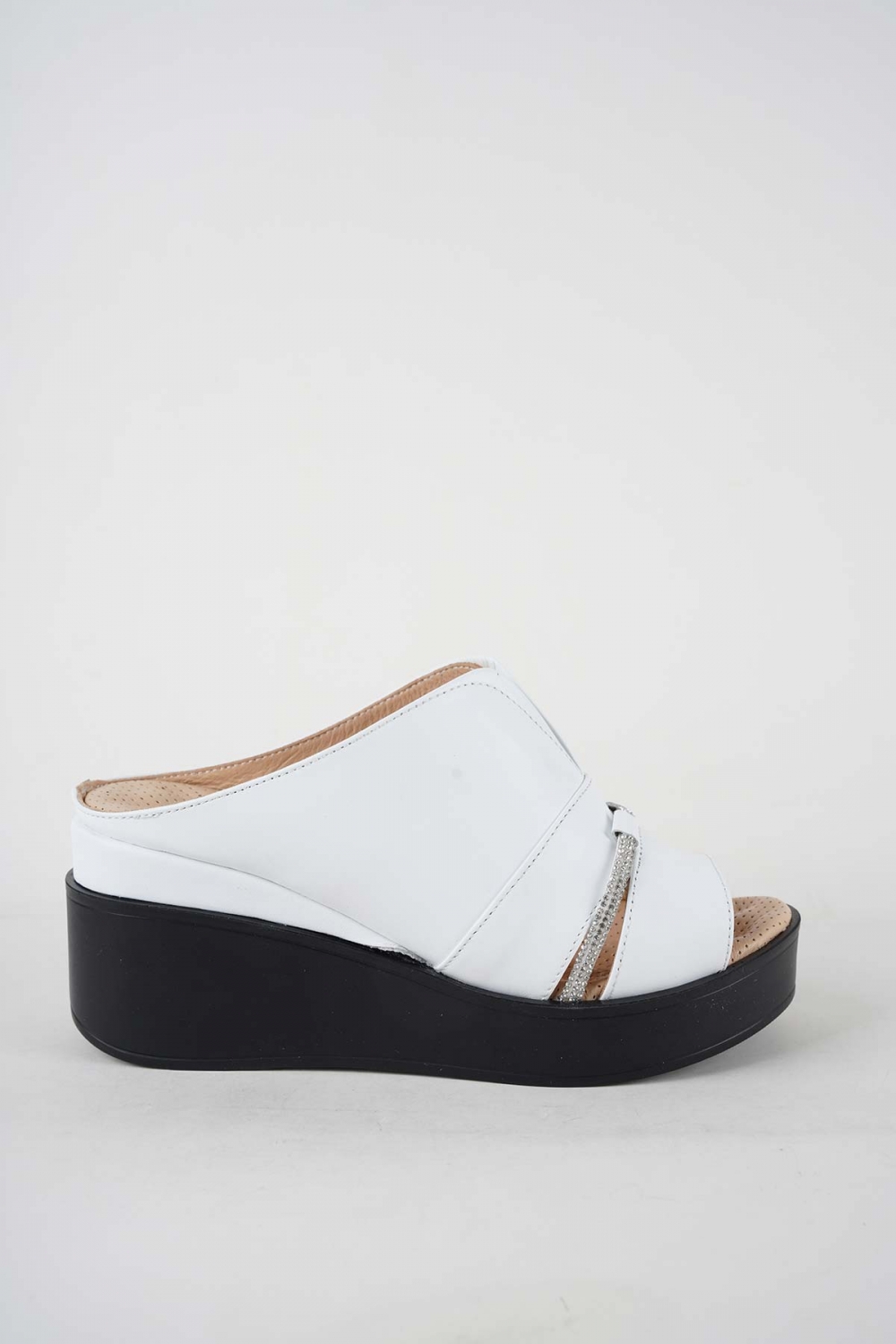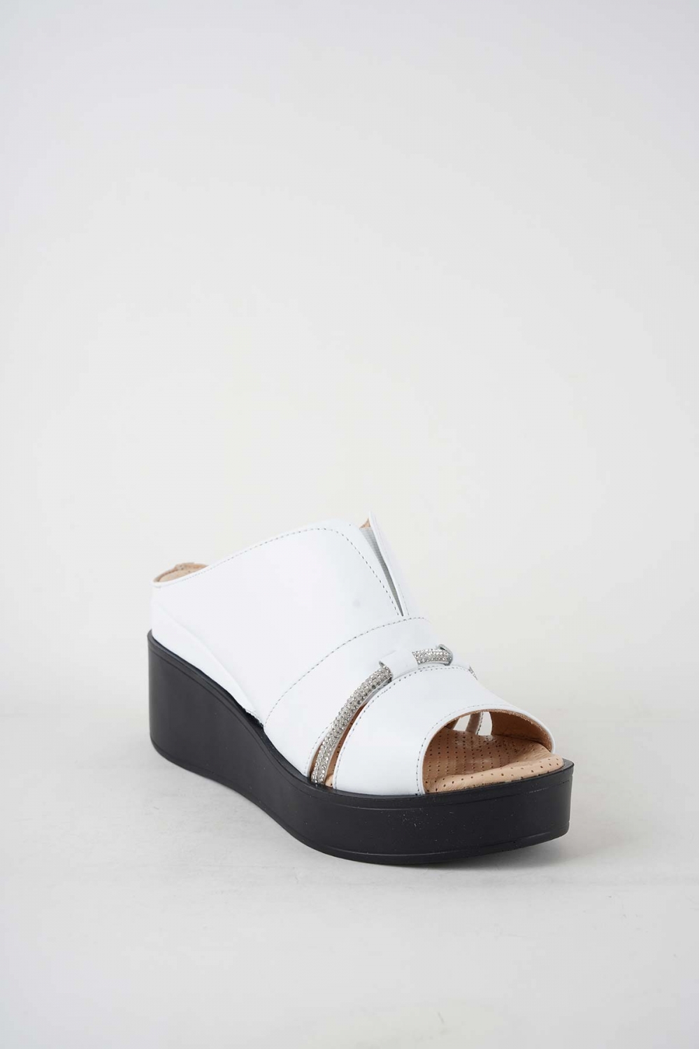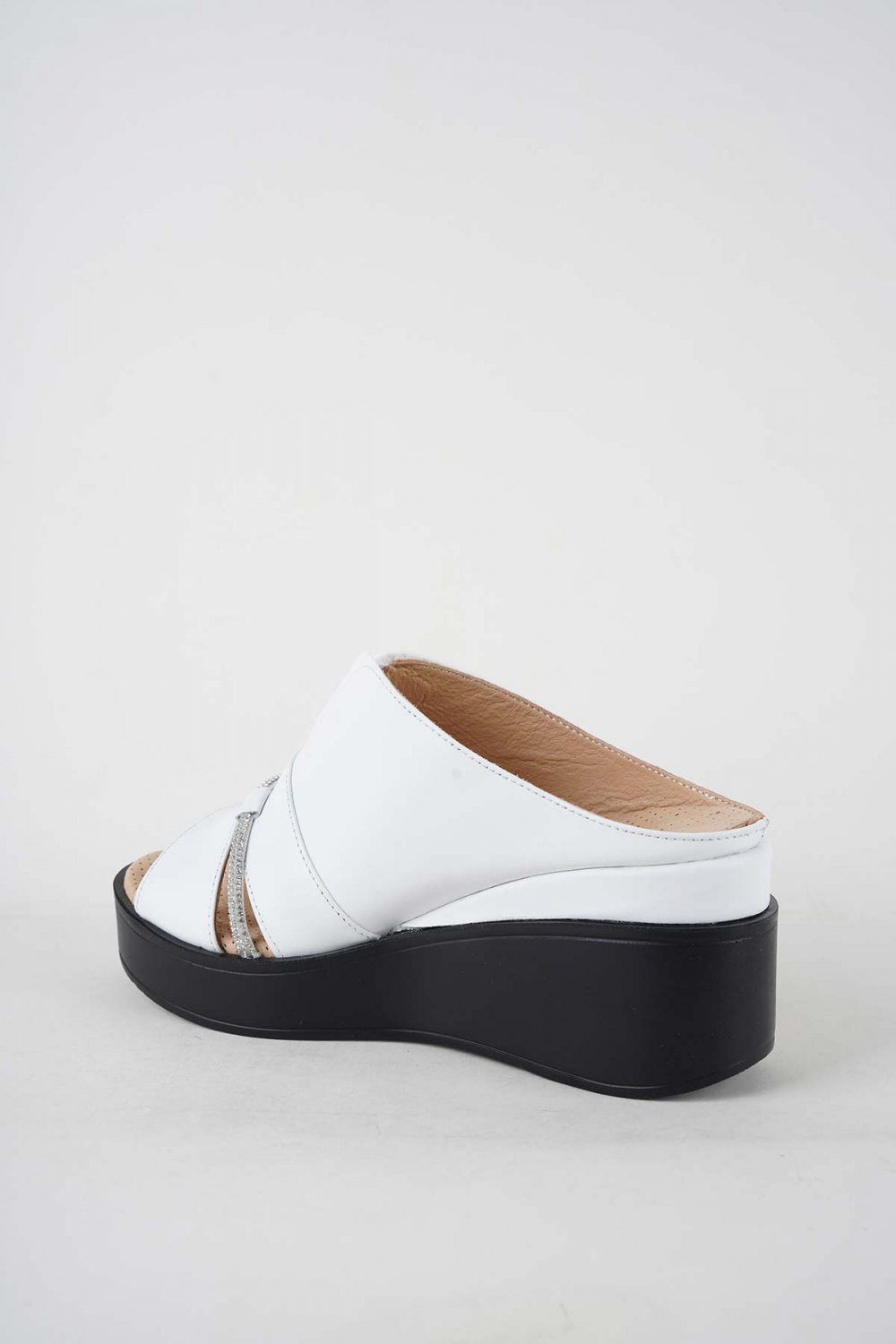 Hakiki Deri Beyaz Kadın Dolgu Topuk Terlik 251136601