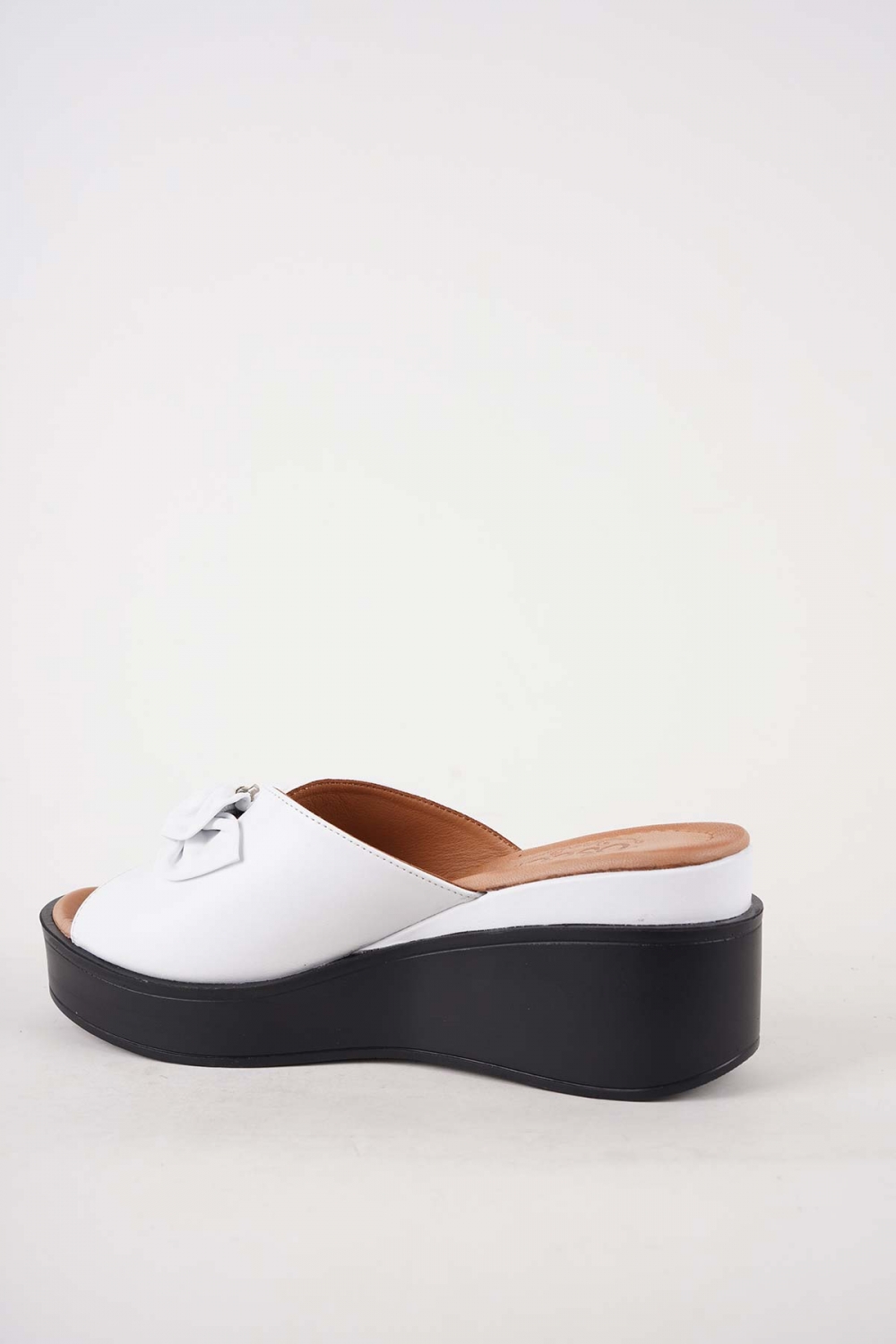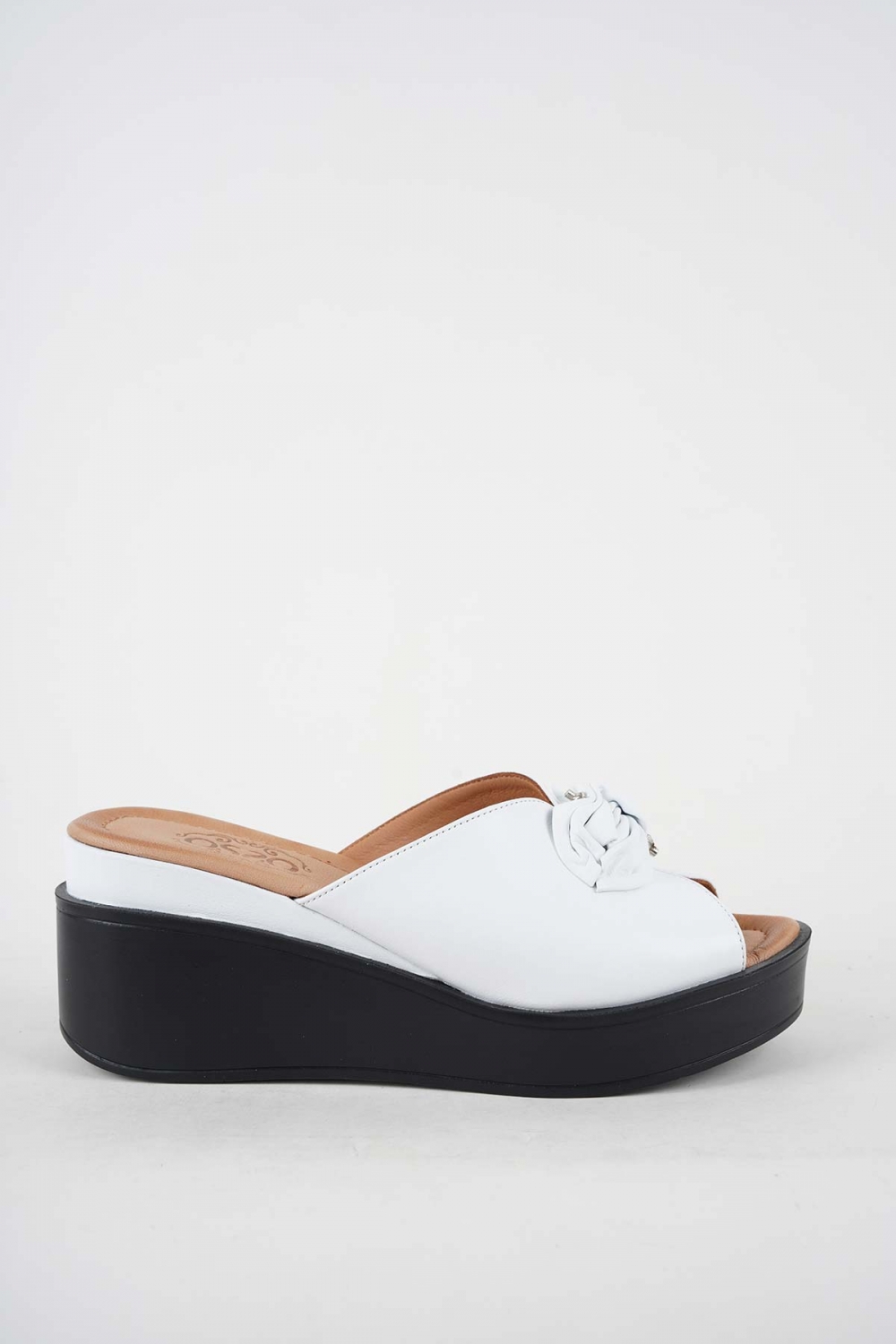 Hakiki Deri Beyaz Kadın Dolgu Topuk Terlik 251229605