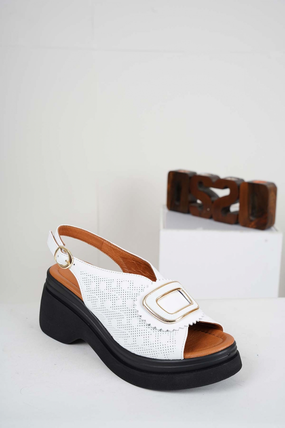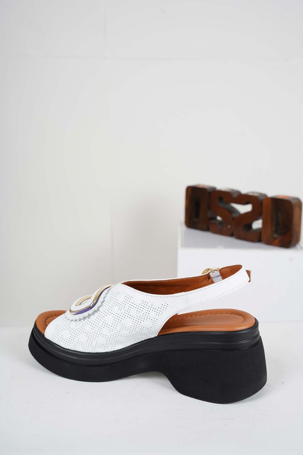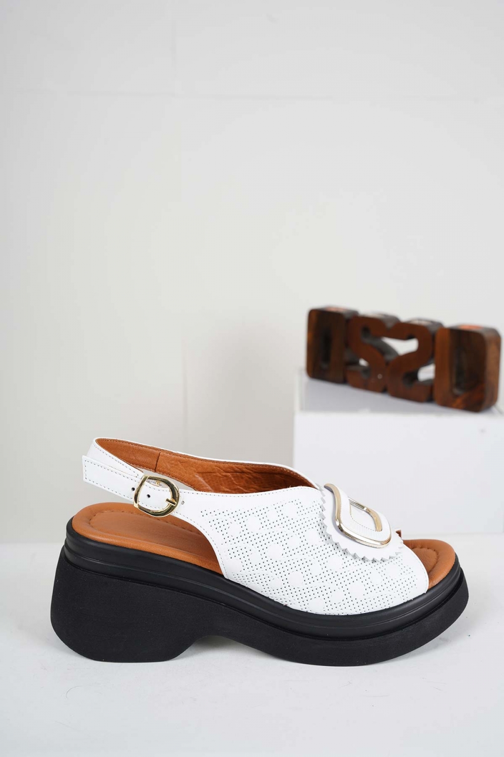 Hakiki Deri Beyaz Kadın Dolgu Topuklu Sandalet 241186501