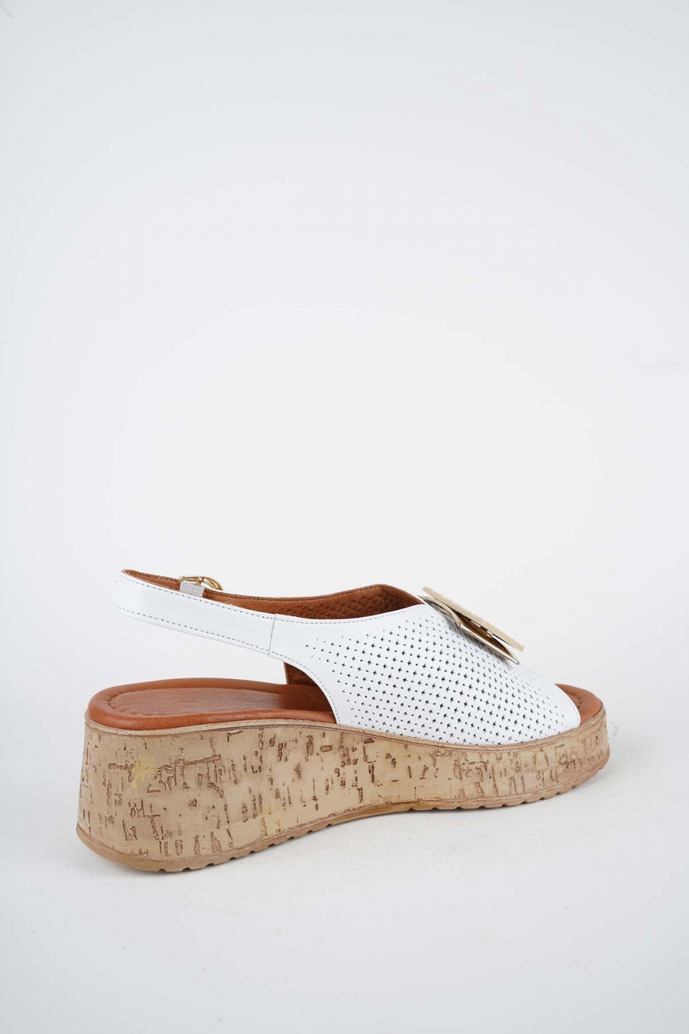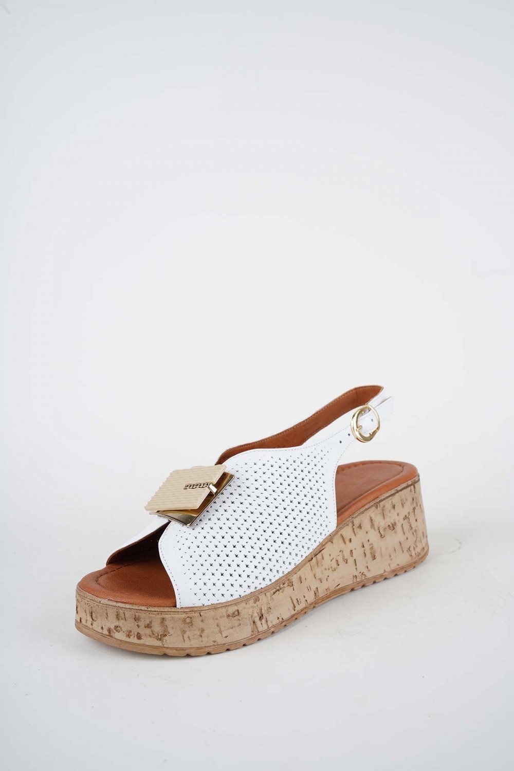 Hakiki Deri Beyaz Kadın Dolgu Topuklu Sandalet 261186500