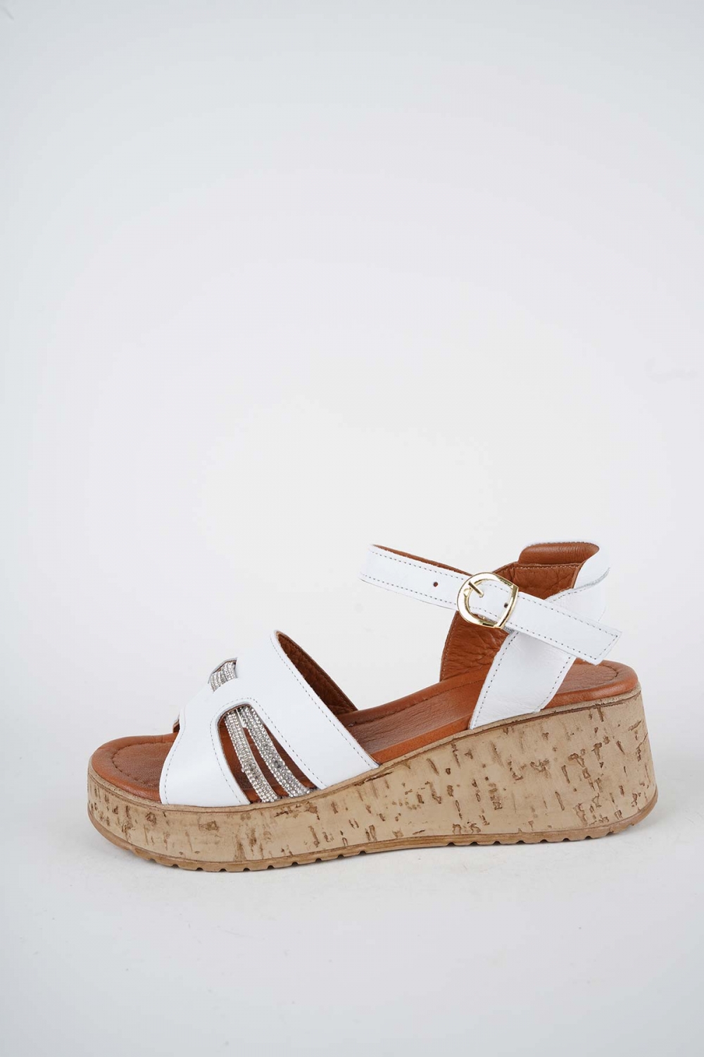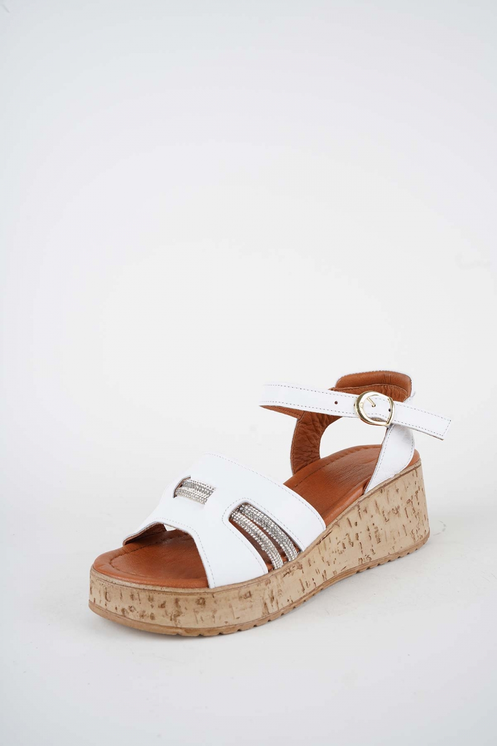 Hakiki Deri Beyaz Kadın Dolgu Topuklu Sandalet 261186505