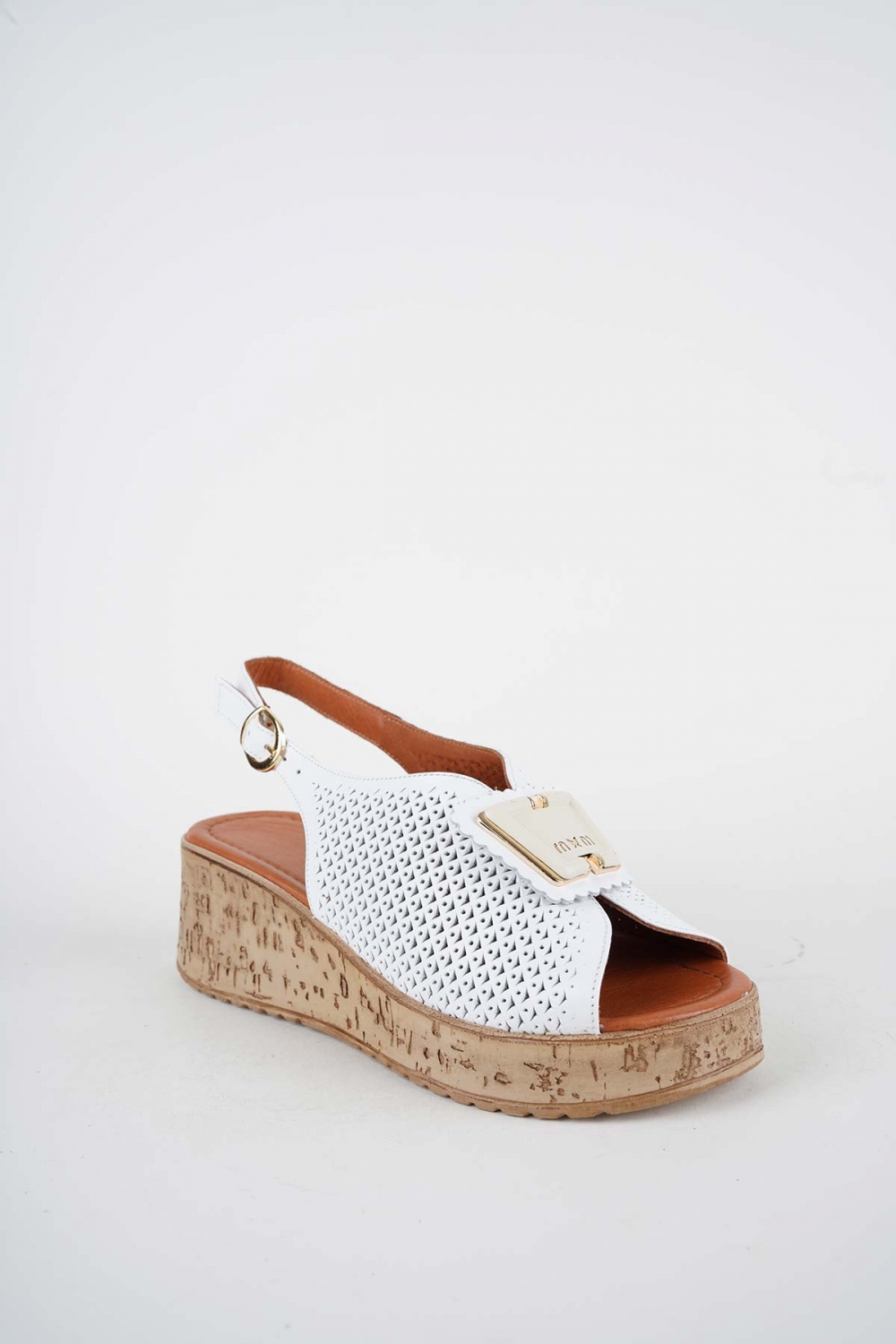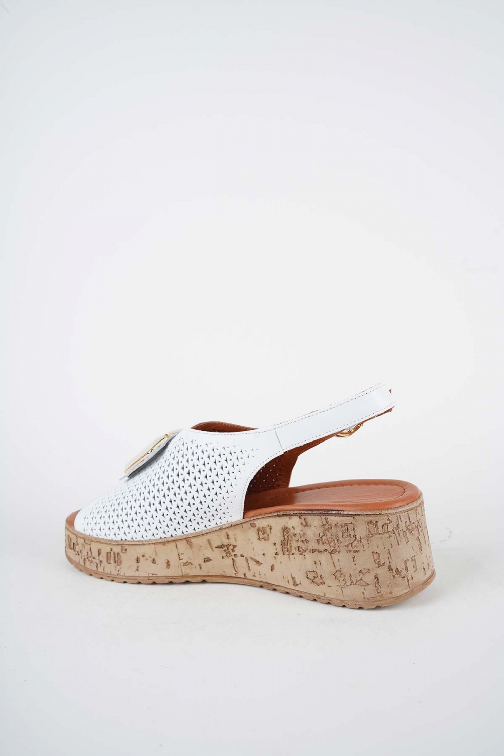 Hakiki Deri Beyaz Kadın Dolgu Topuklu Sandalet 261186506