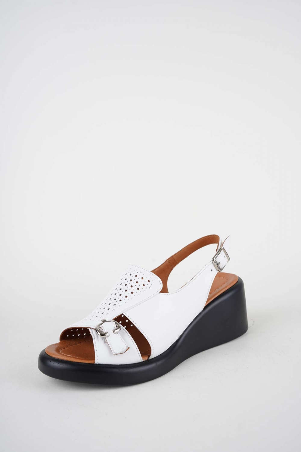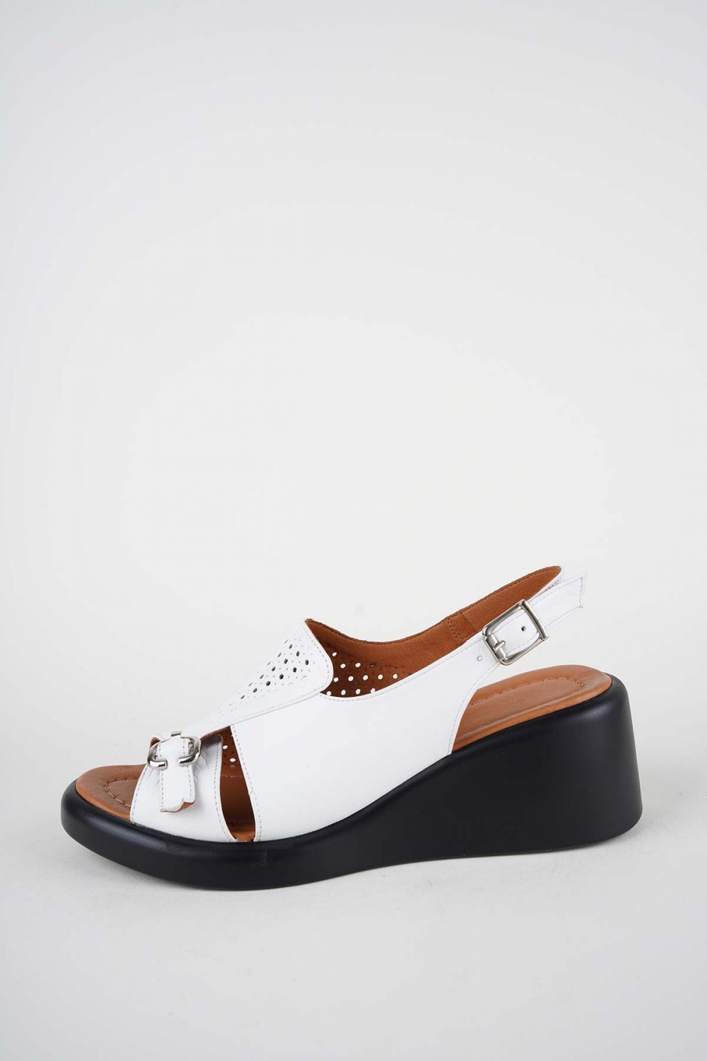 Hakiki Deri Beyaz Kadın Dolgu Topuklu Sandalet 261229507