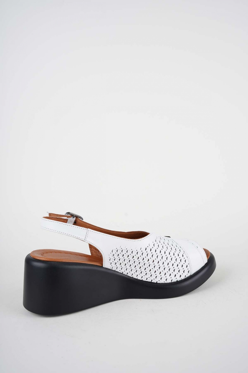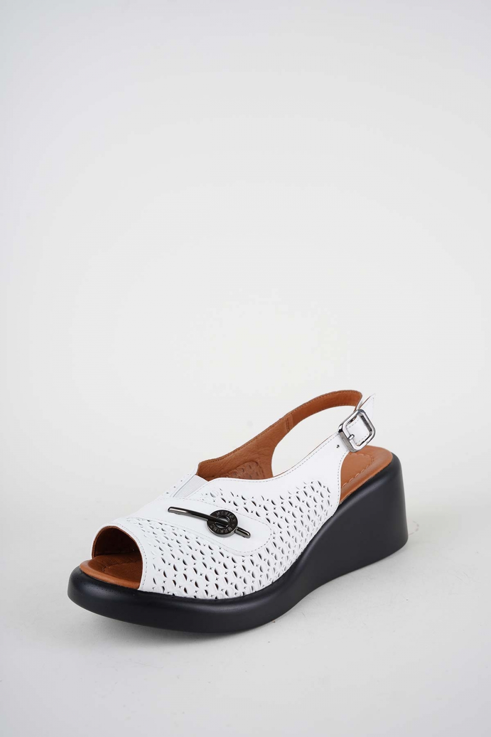 Hakiki Deri Beyaz Kadın Dolgu Topuklu Sandalet 261229509