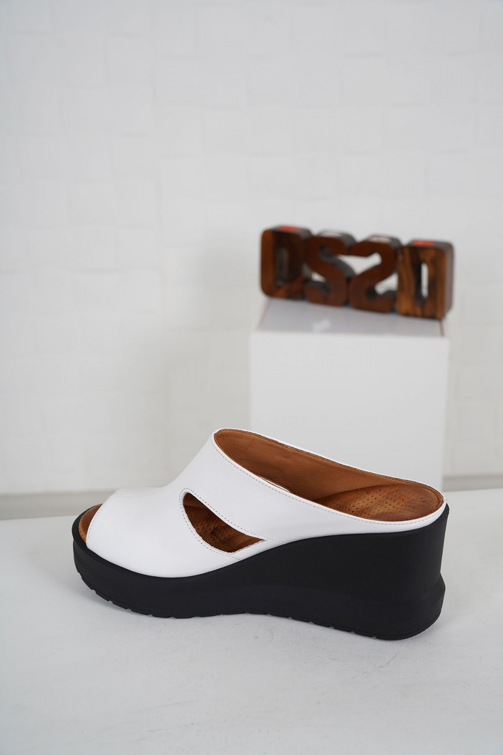 Hakiki Deri Beyaz Kadın Dolgu Topuklu Terlik 231229601