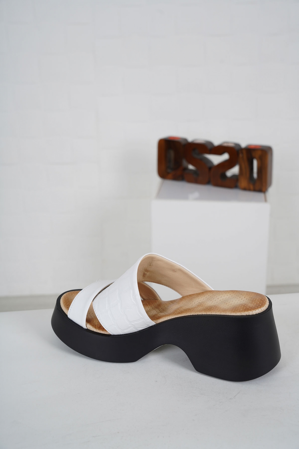 Hakiki Deri Beyaz Kadın Dolgu Topuklu Terlik 231229603