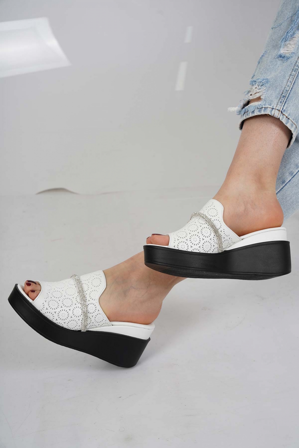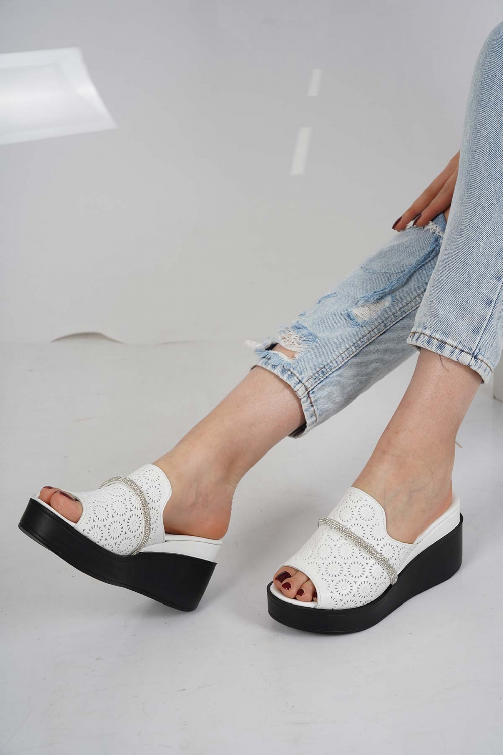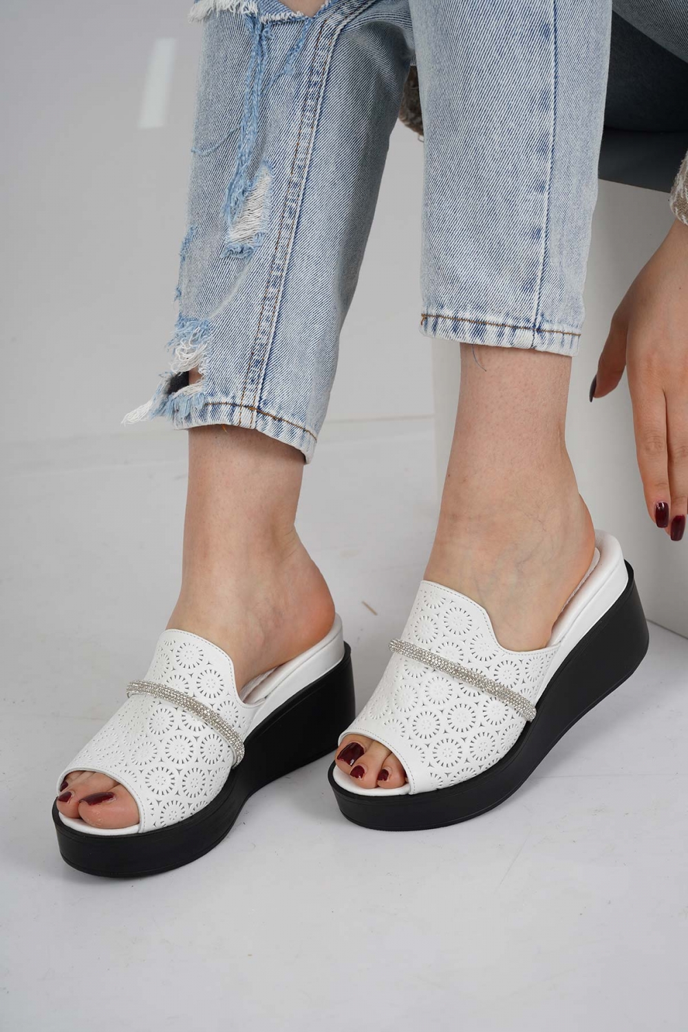Hakiki Deri Beyaz Kadın Dolgu Topuklu Terlik 231229607