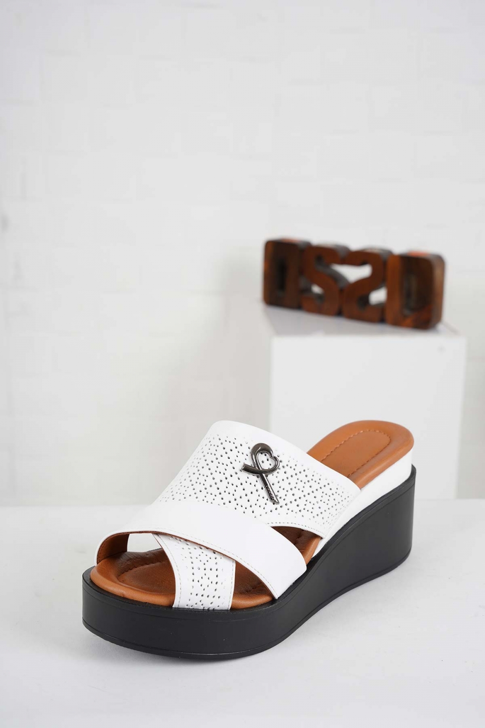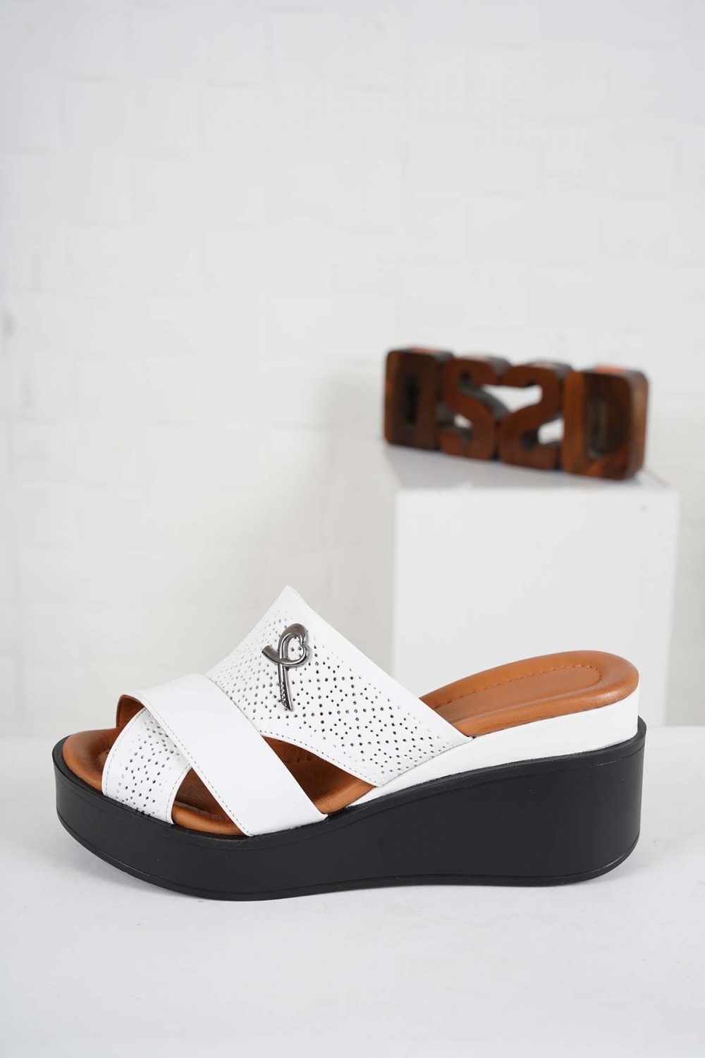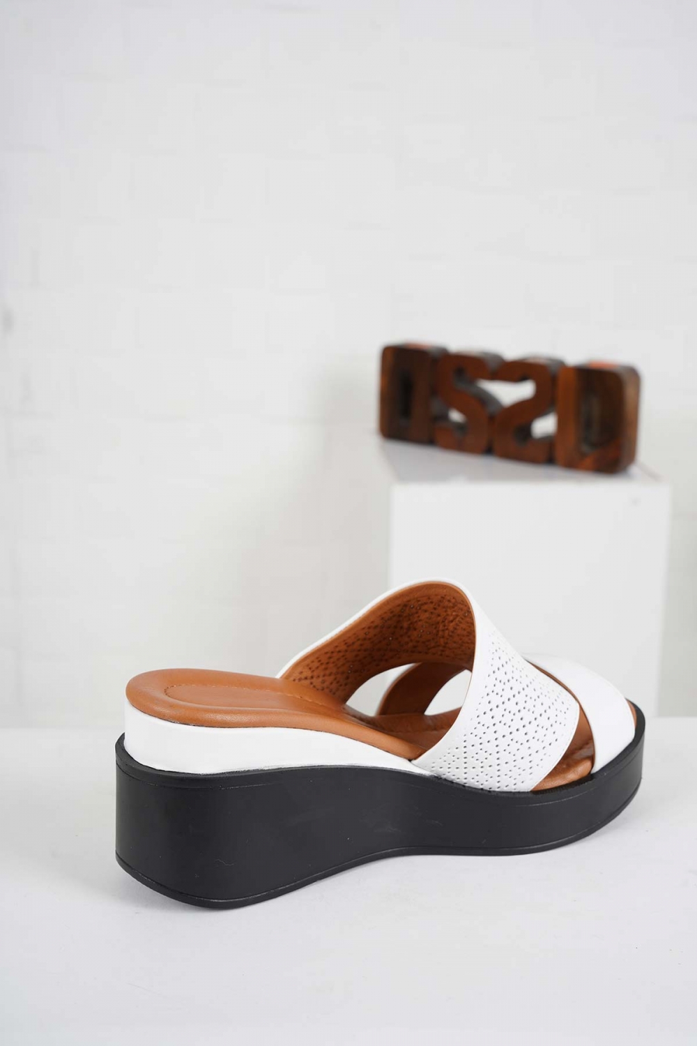 Hakiki Deri Beyaz Kadın Dolgu Topuklu Terlik 231229609