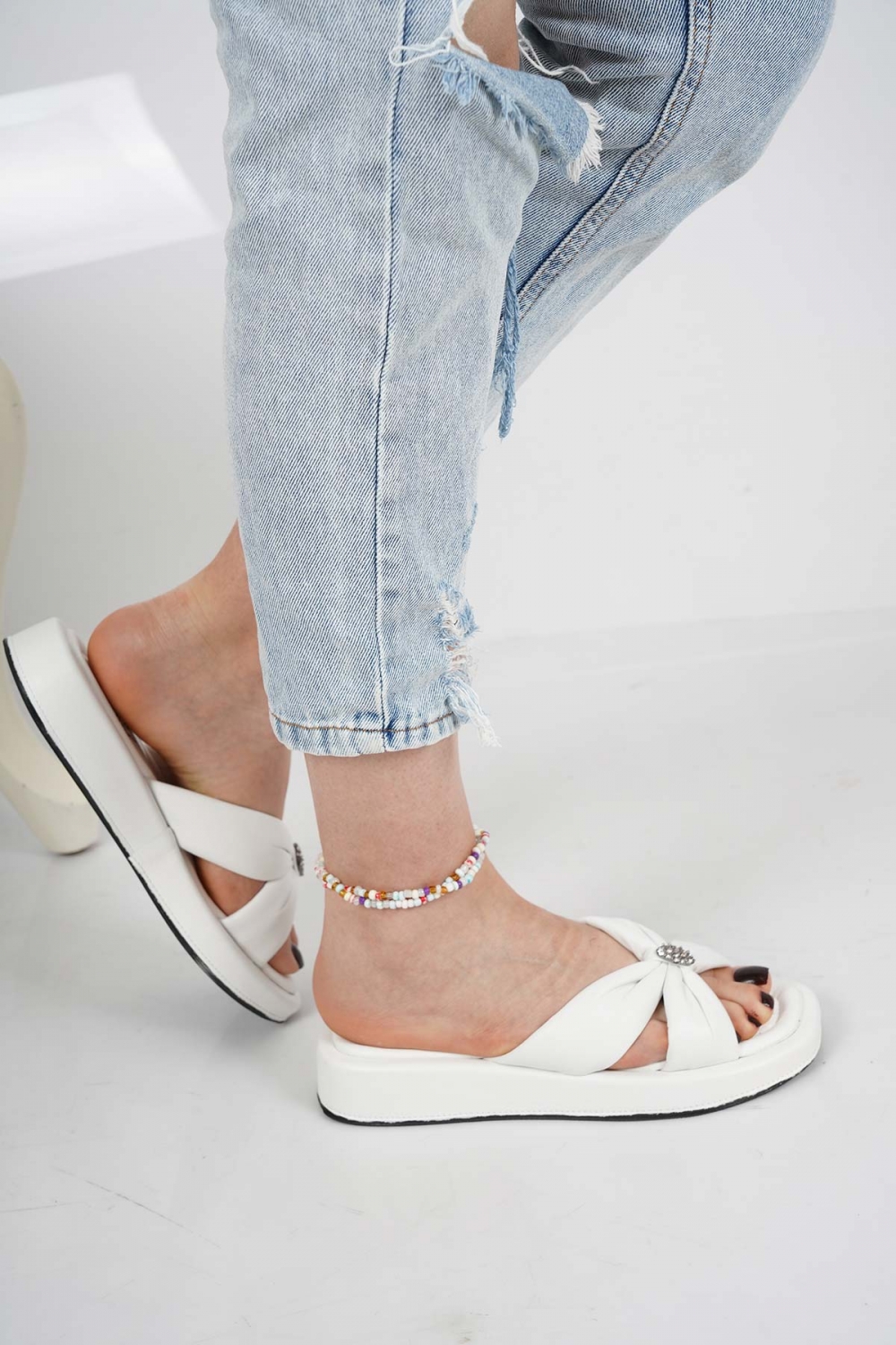 Hakiki Deri Beyaz Kadın Dolgu Topuklu Terlik 231229612
