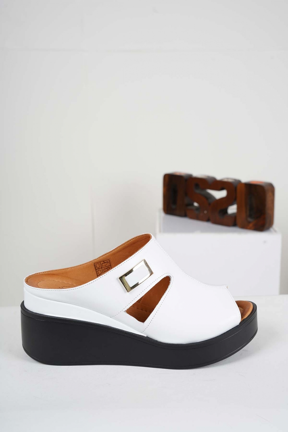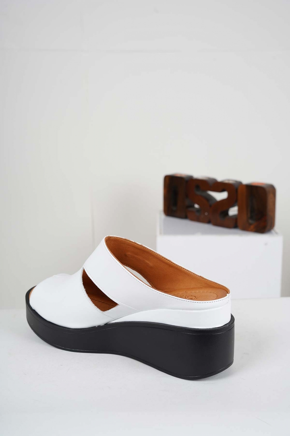 Hakiki Deri Beyaz Kadın Dolgu Topuklu Terlik 241229613