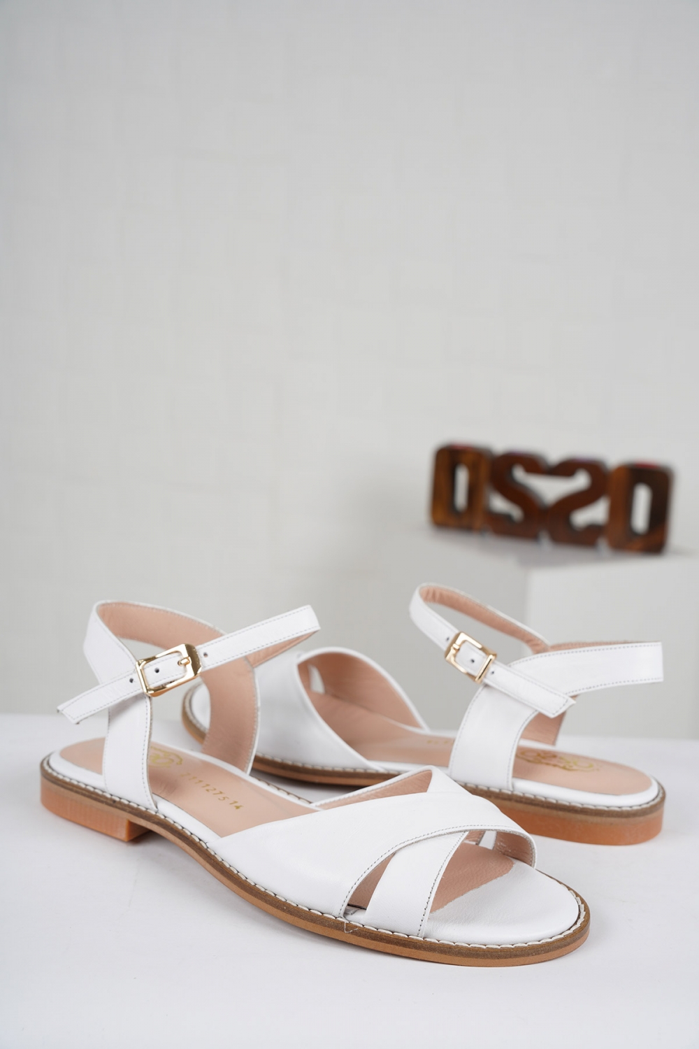 Hakiki Deri Beyaz Kadın Düz Sandalet 211127514