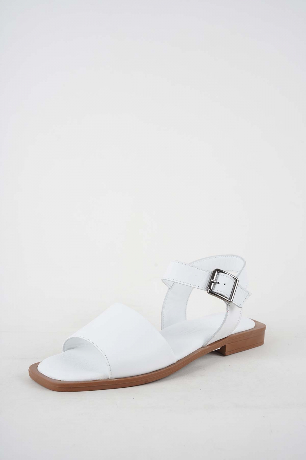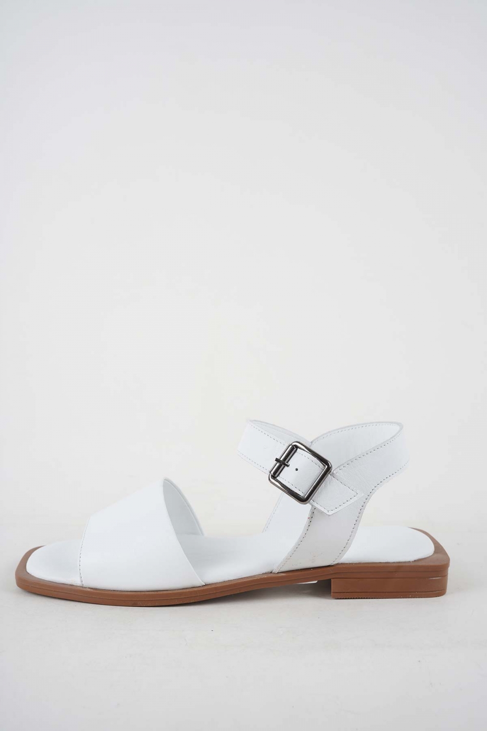 Hakiki Deri Beyaz Kadın Düz Sandalet 251103501
