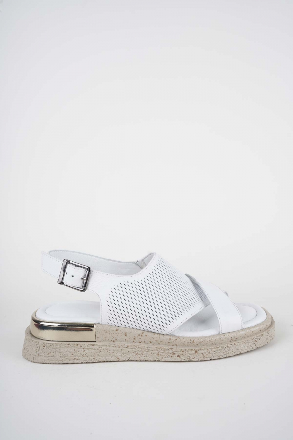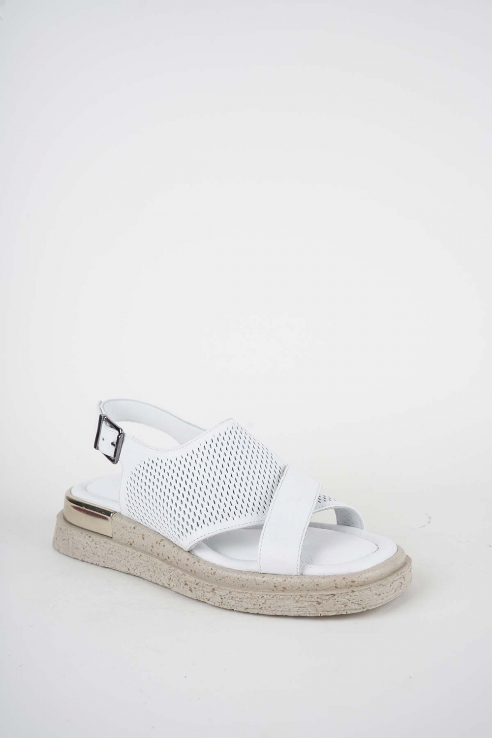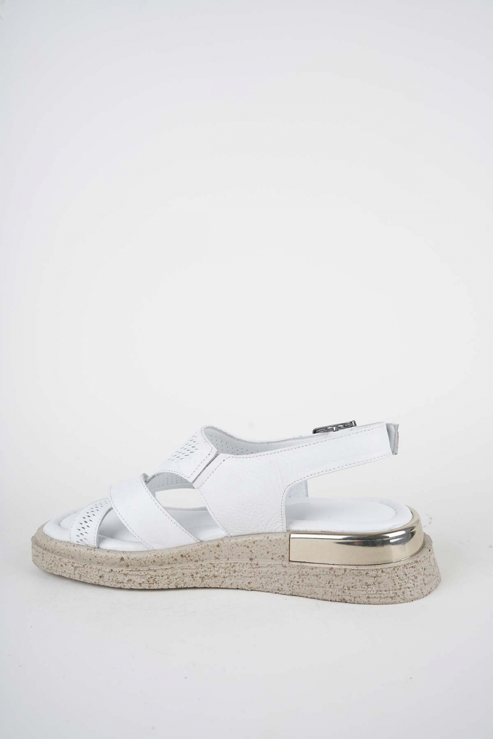 Hakiki Deri Beyaz Kadın Düz Sandalet 261118501