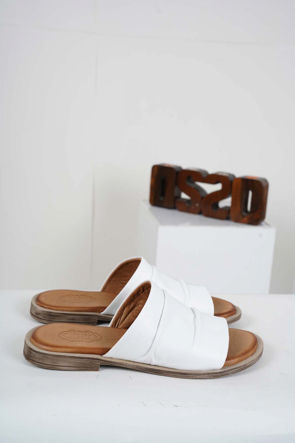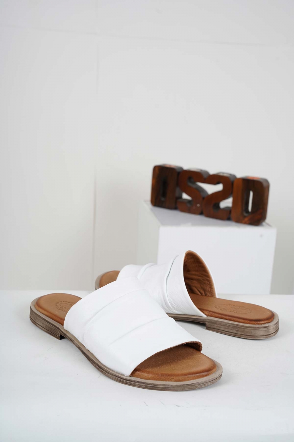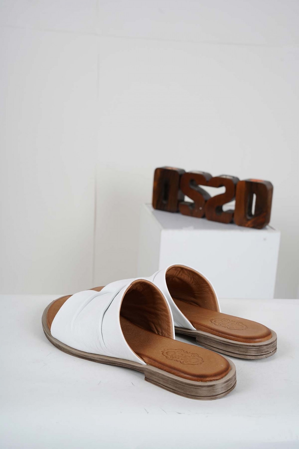 Hakiki Deri Beyaz Kadın Düz Terlik 241126601