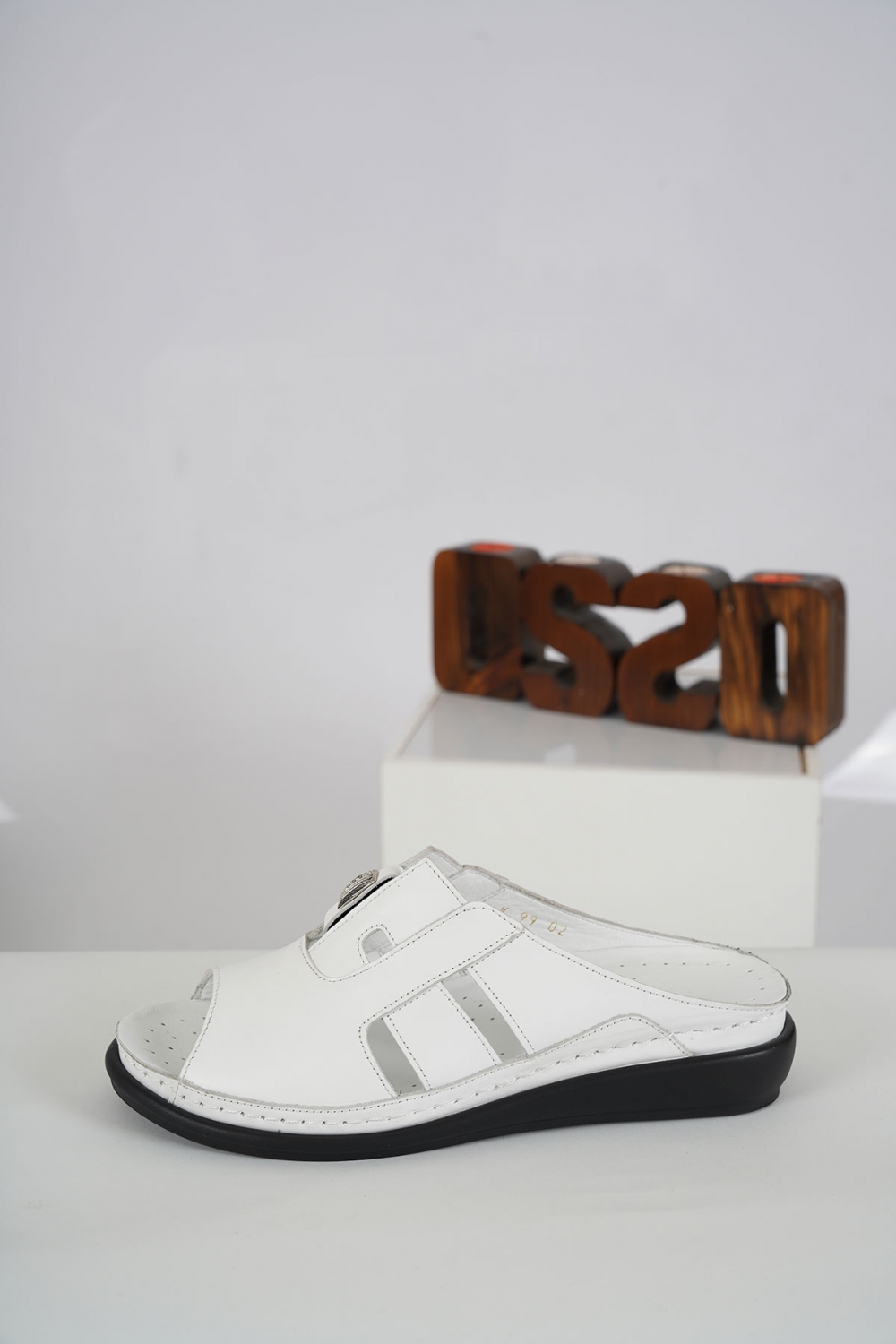 Hakiki Deri Beyaz Kadın Komfort Terlik 231177604