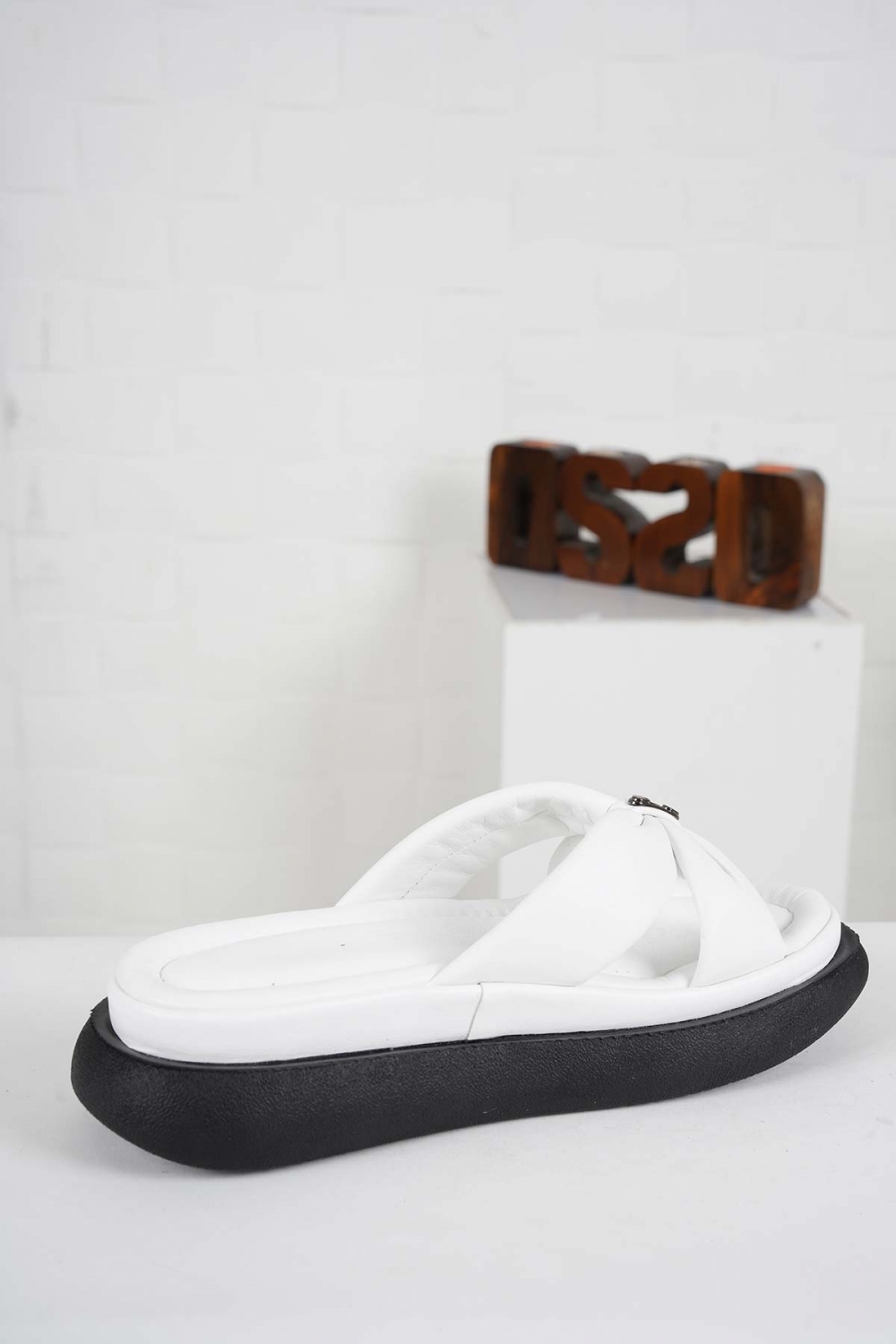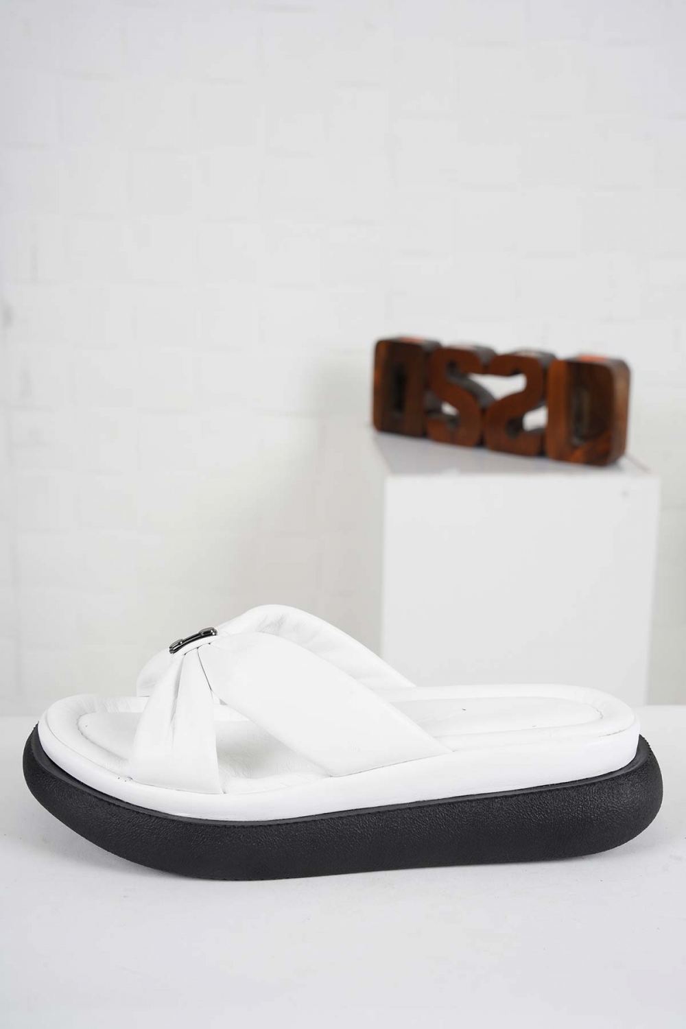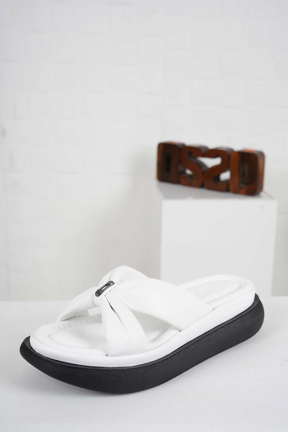 Hakiki Deri Beyaz Kadın Komfort Terlik 241229604
