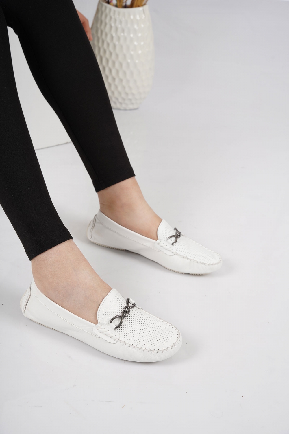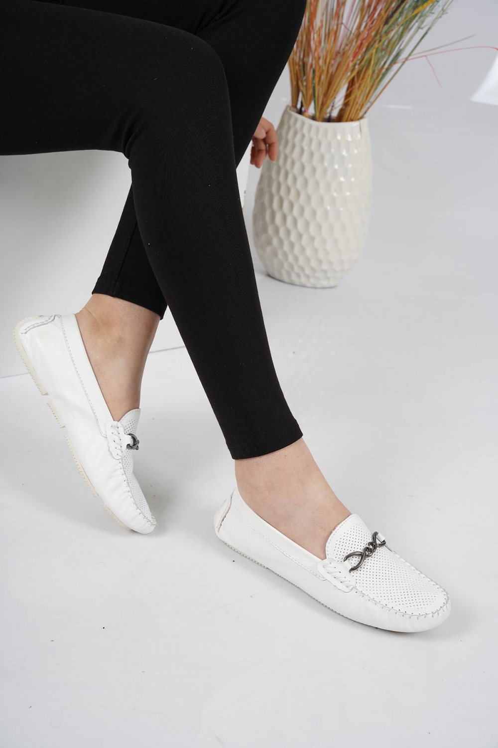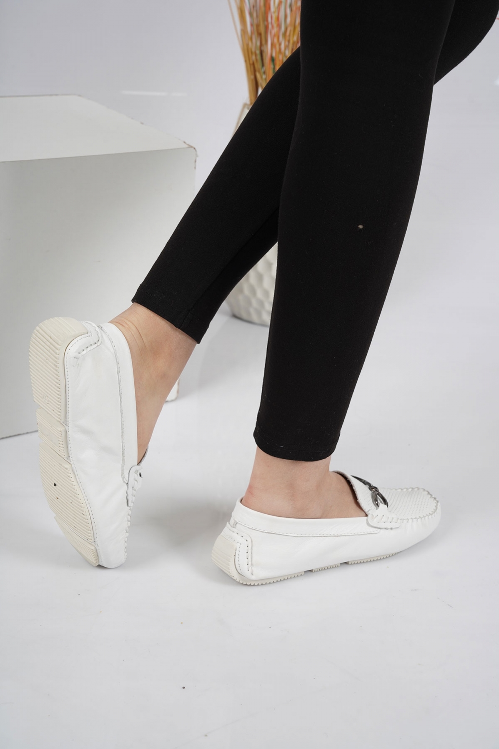Hakiki Deri Beyaz Kadın Makosen Ayakkabı 221209114