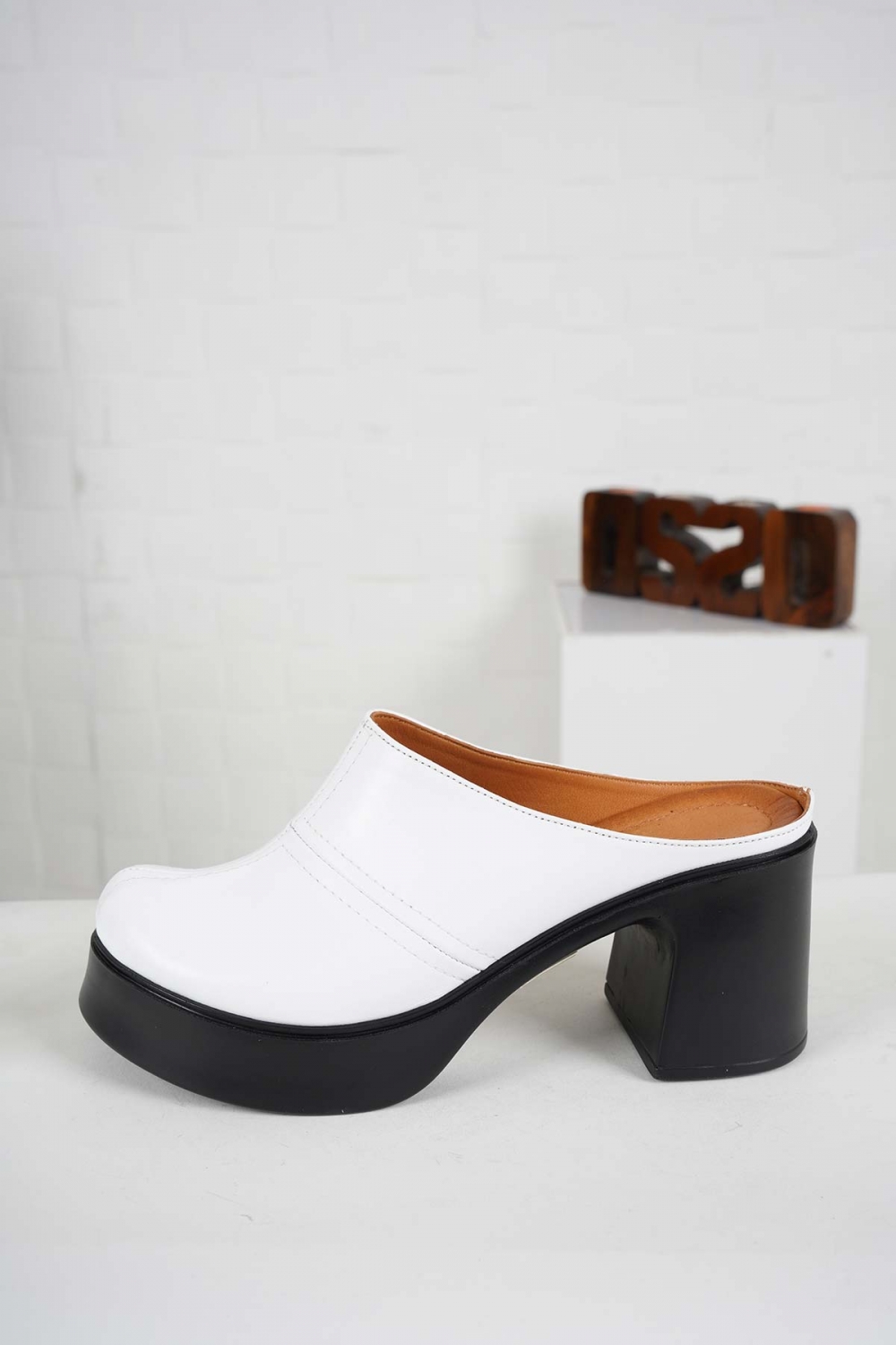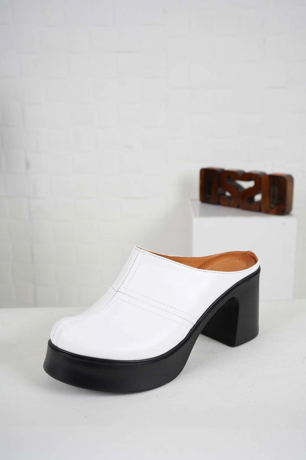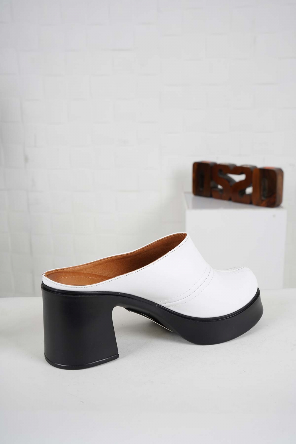 Hakiki Deri Beyaz Kadın Topuklu Sabo 241229702
