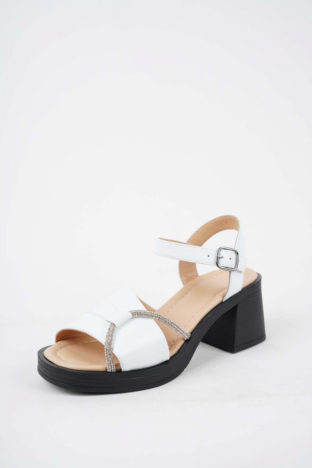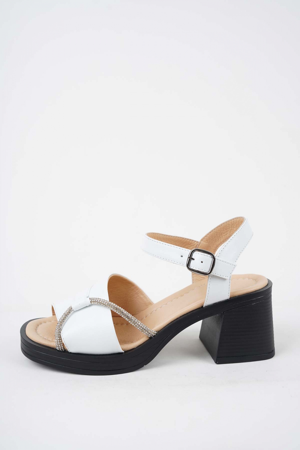 Hakiki Deri Beyaz Kadın Topuklu Sandalet 251189505