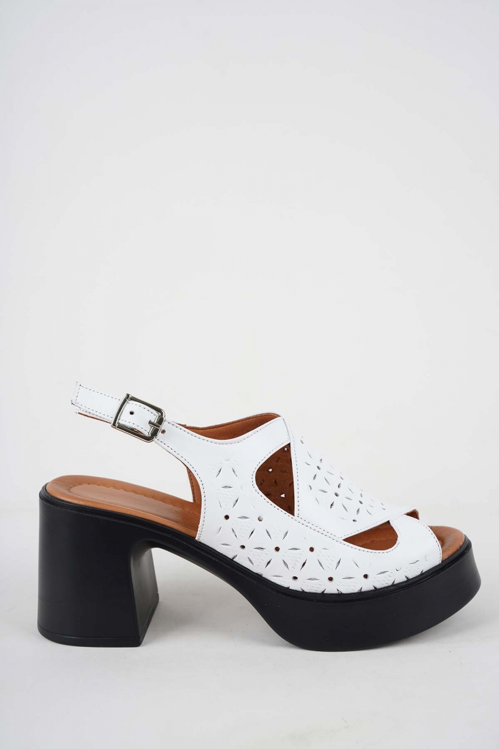 Hakiki Deri Beyaz Kadın Topuklu Sandalet 251229503