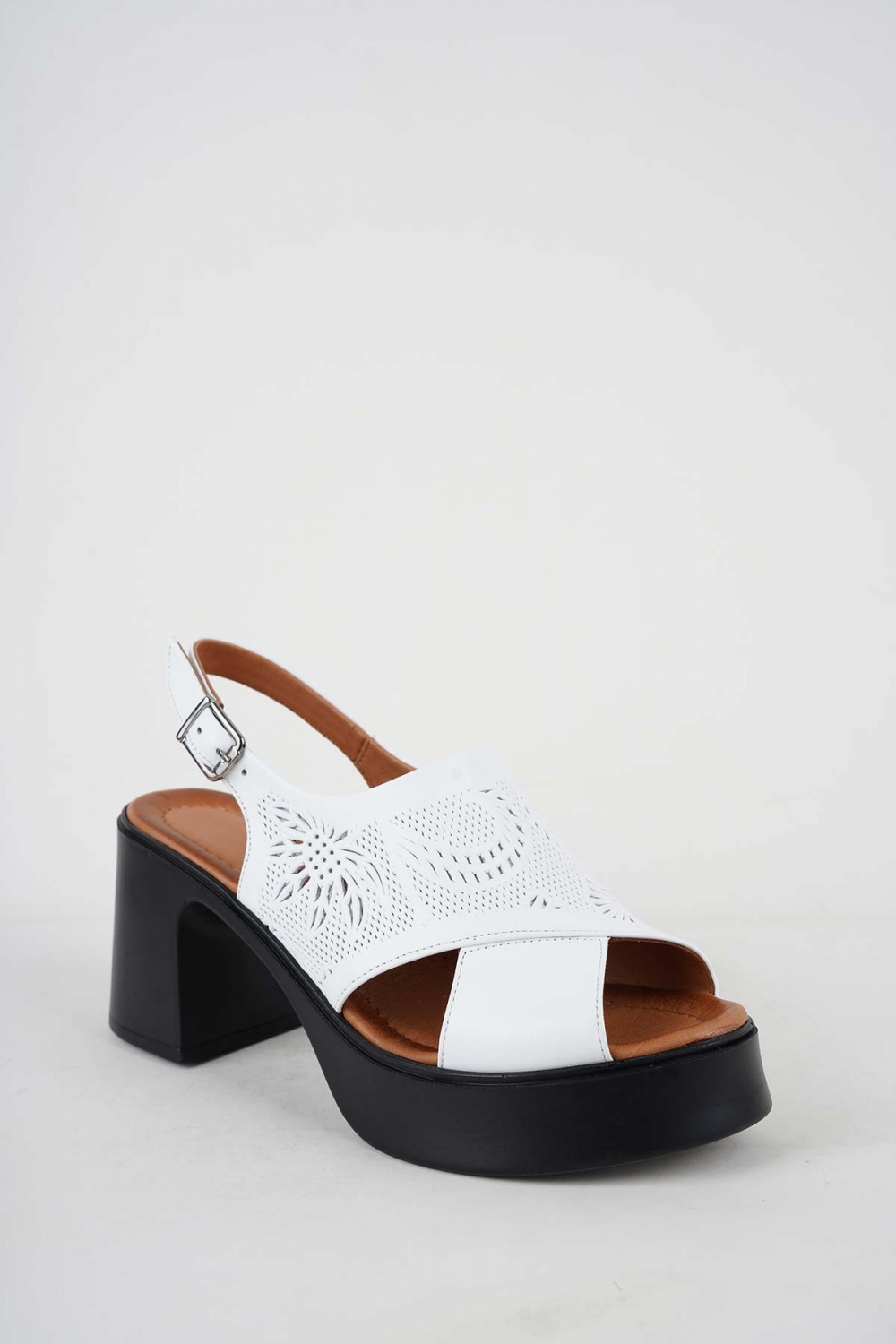 Hakiki Deri Beyaz Kadın Topuklu Sandalet 251229504