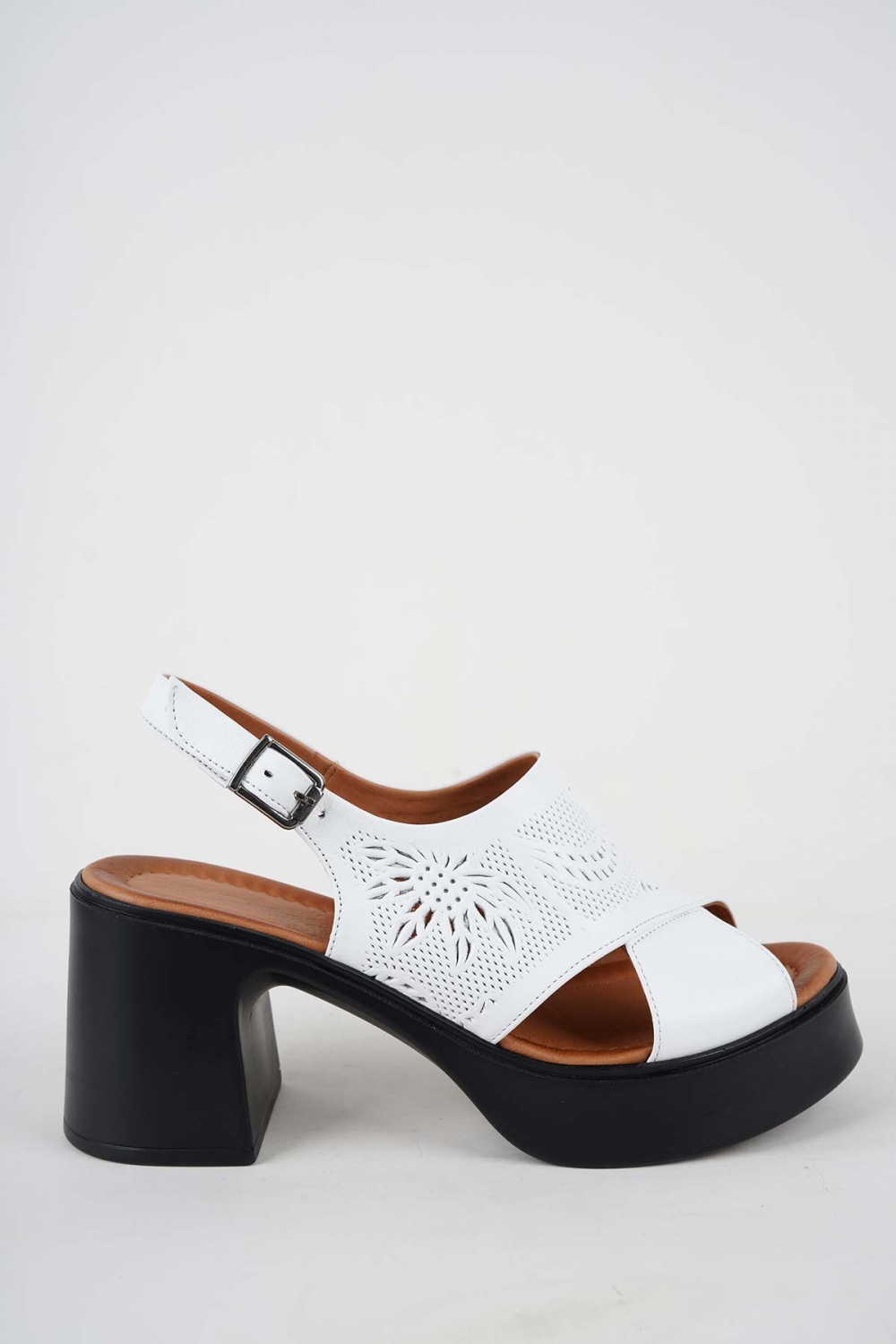 Hakiki Deri Beyaz Kadın Topuklu Sandalet 251229504