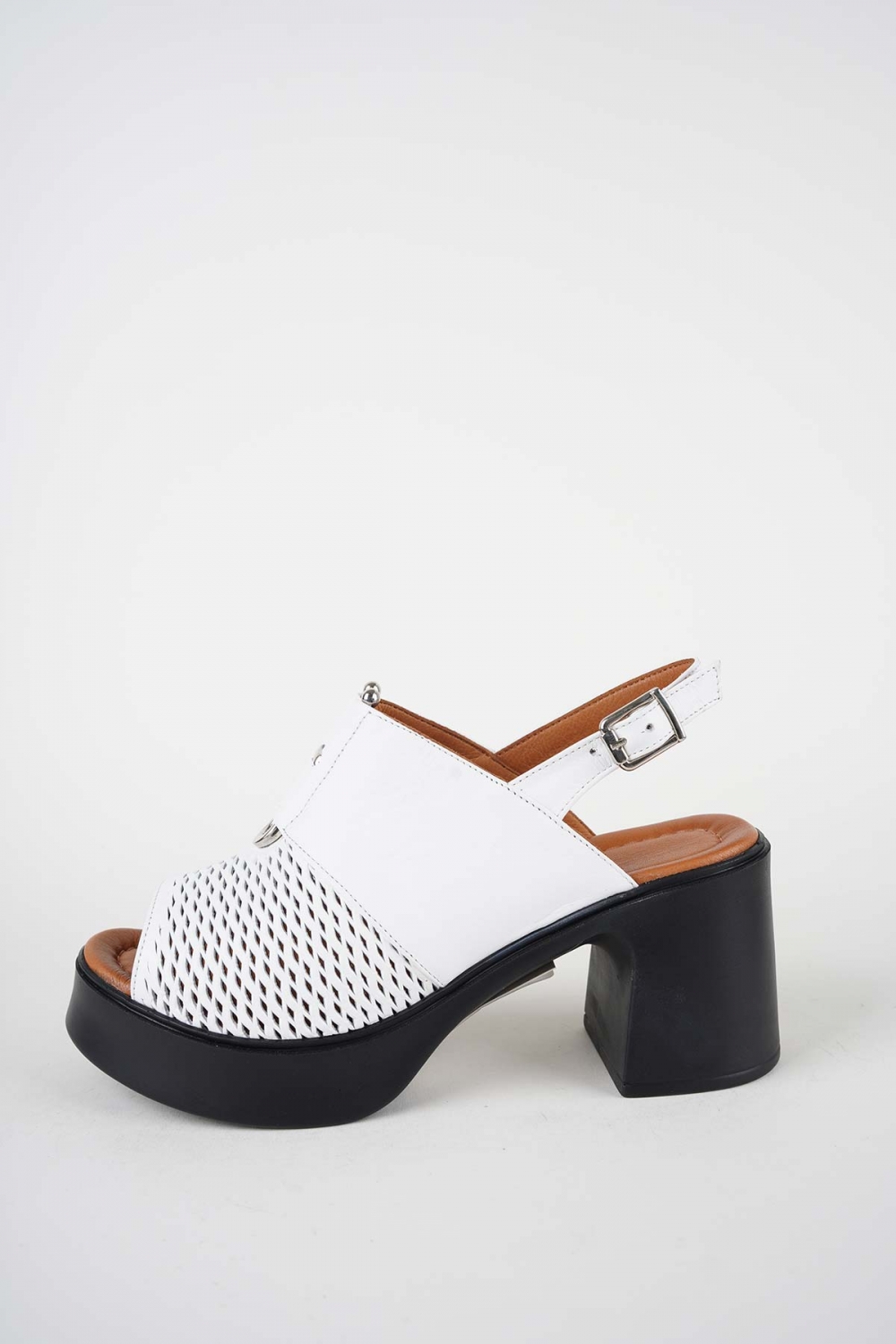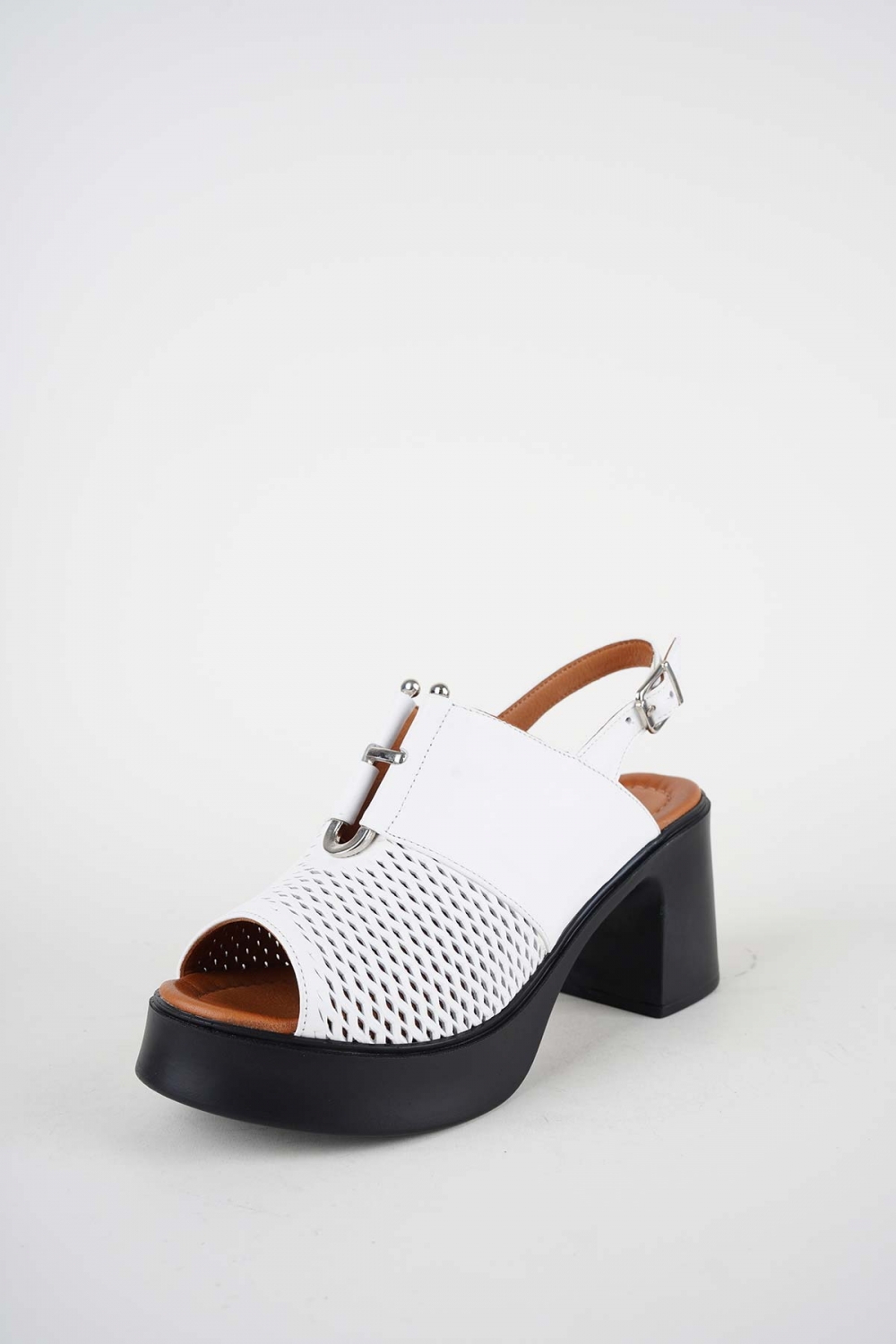Hakiki Deri Beyaz Kadın Topuklu Sandalet 261229505