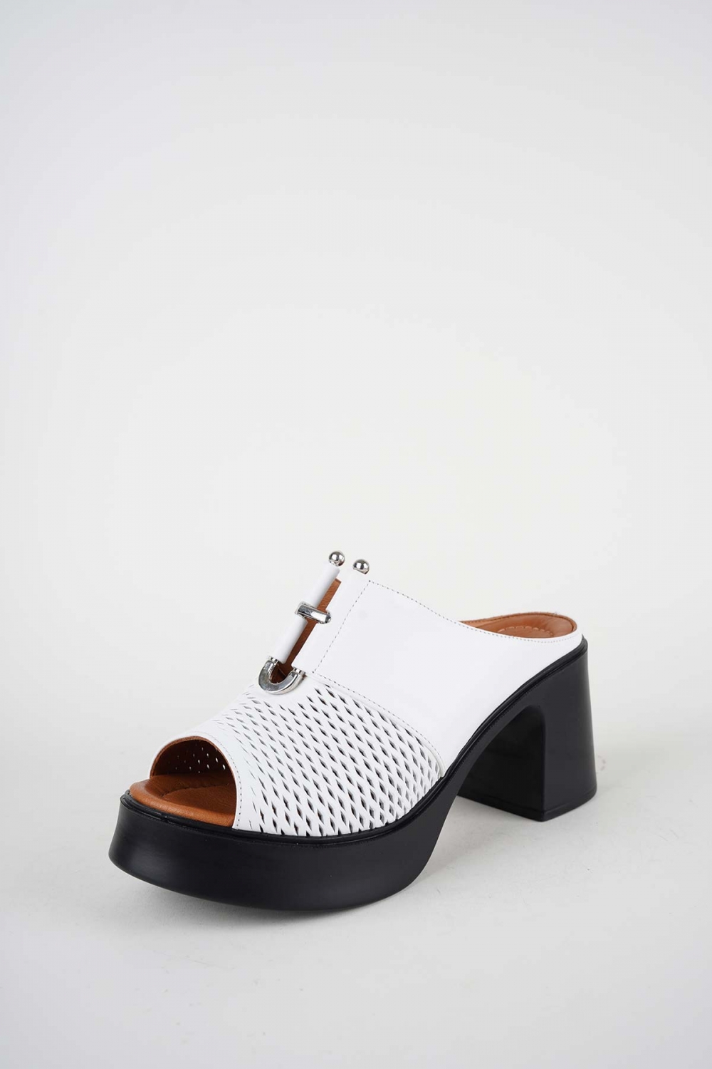 Hakiki Deri Beyaz Kadın Topuklu Sandalet 261229601