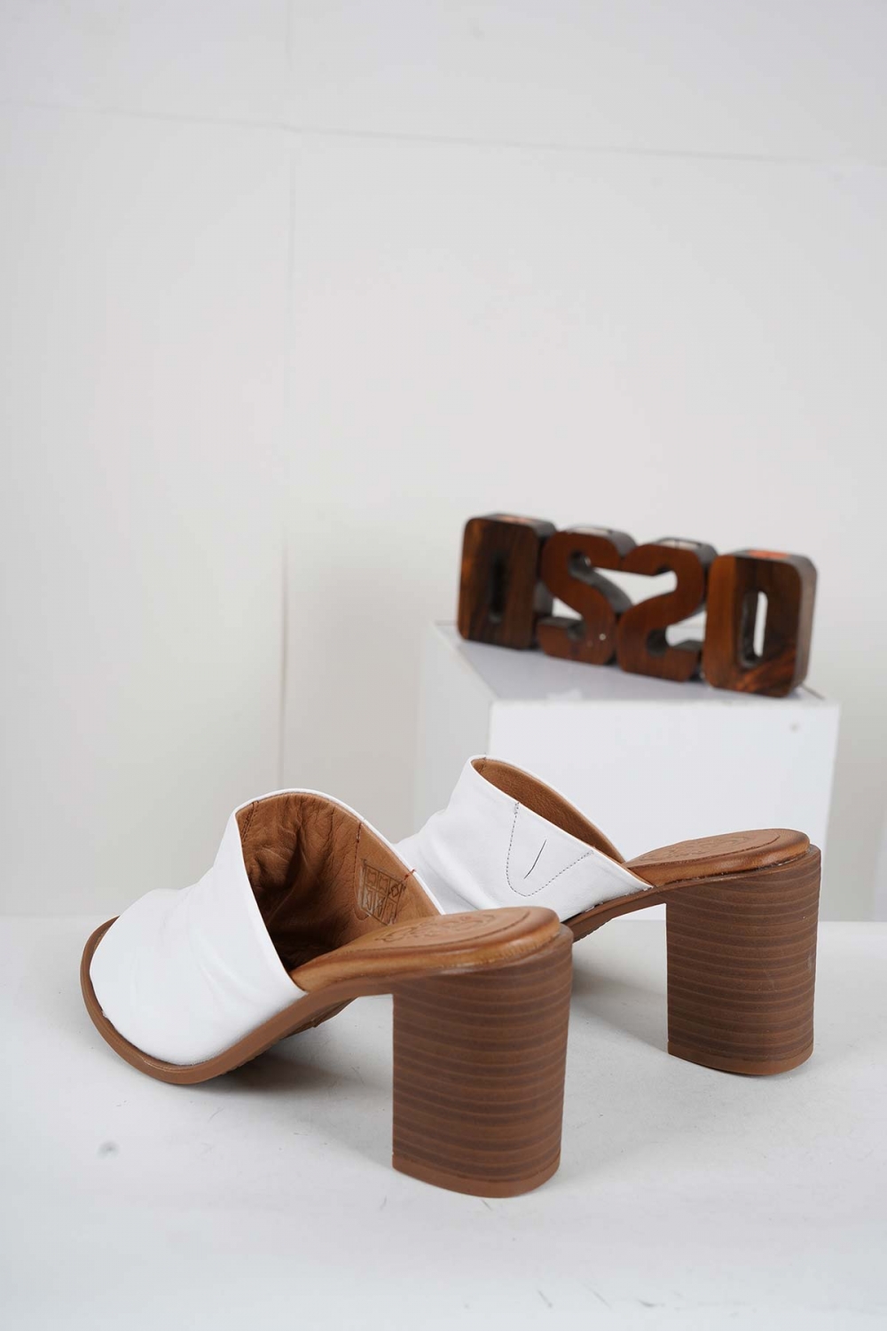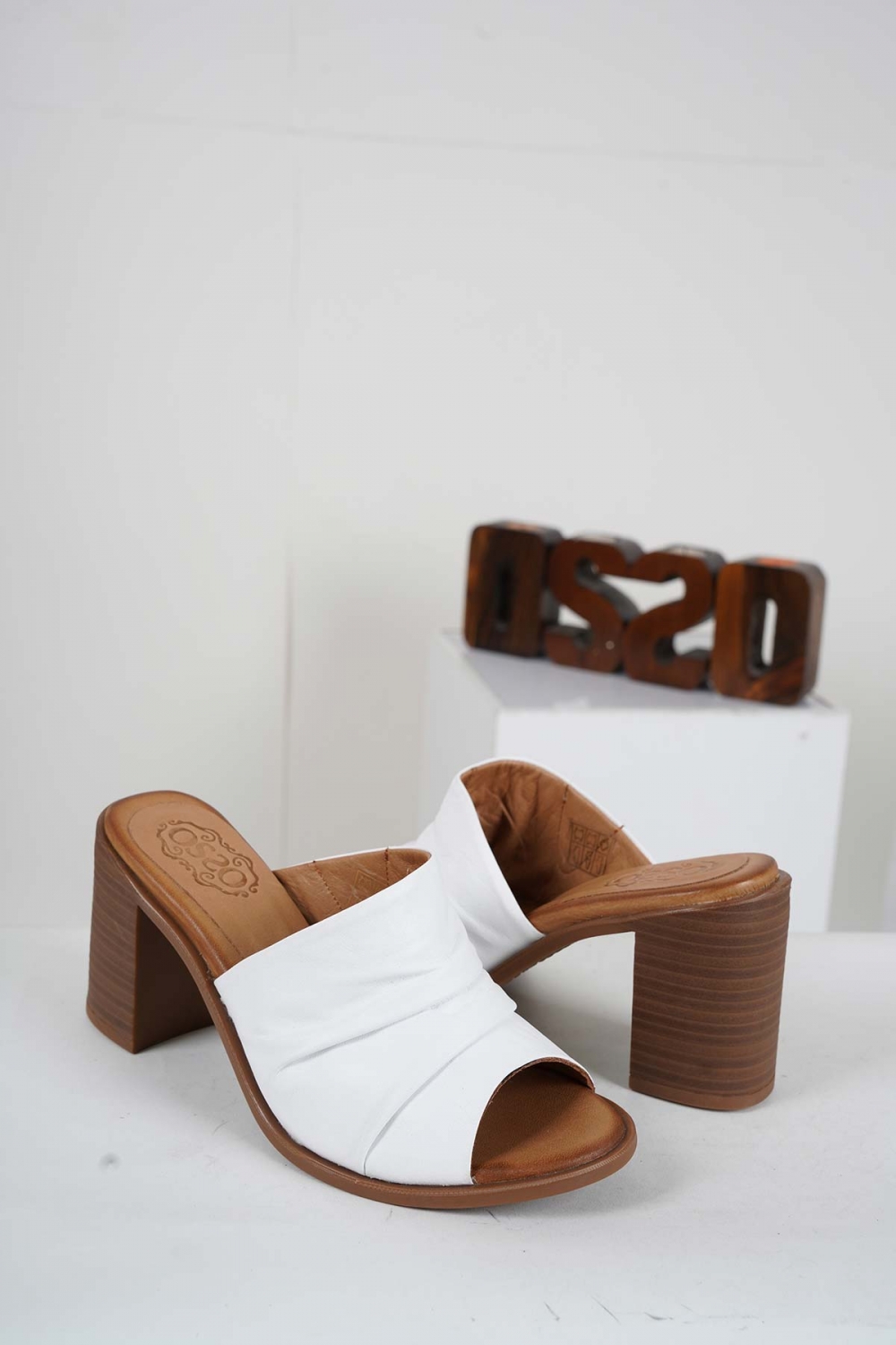 Hakiki Deri Beyaz Kadın Topuklu Terlik 241126605